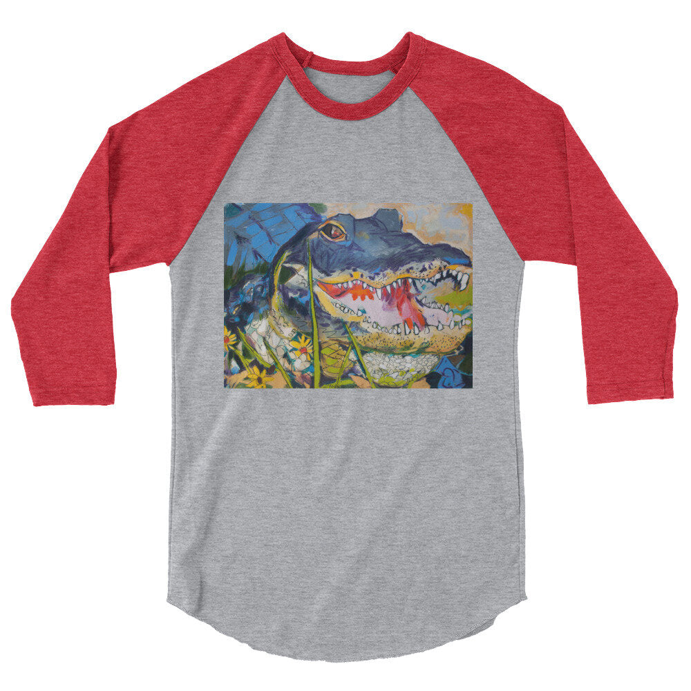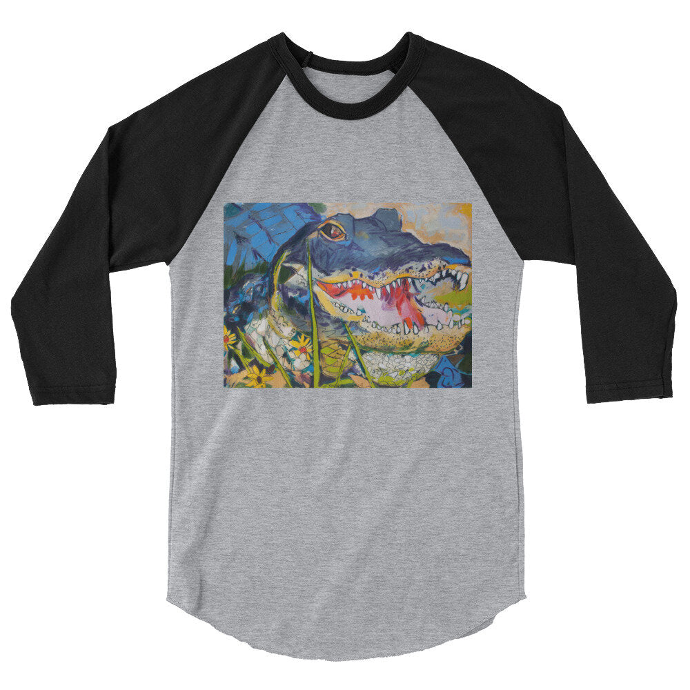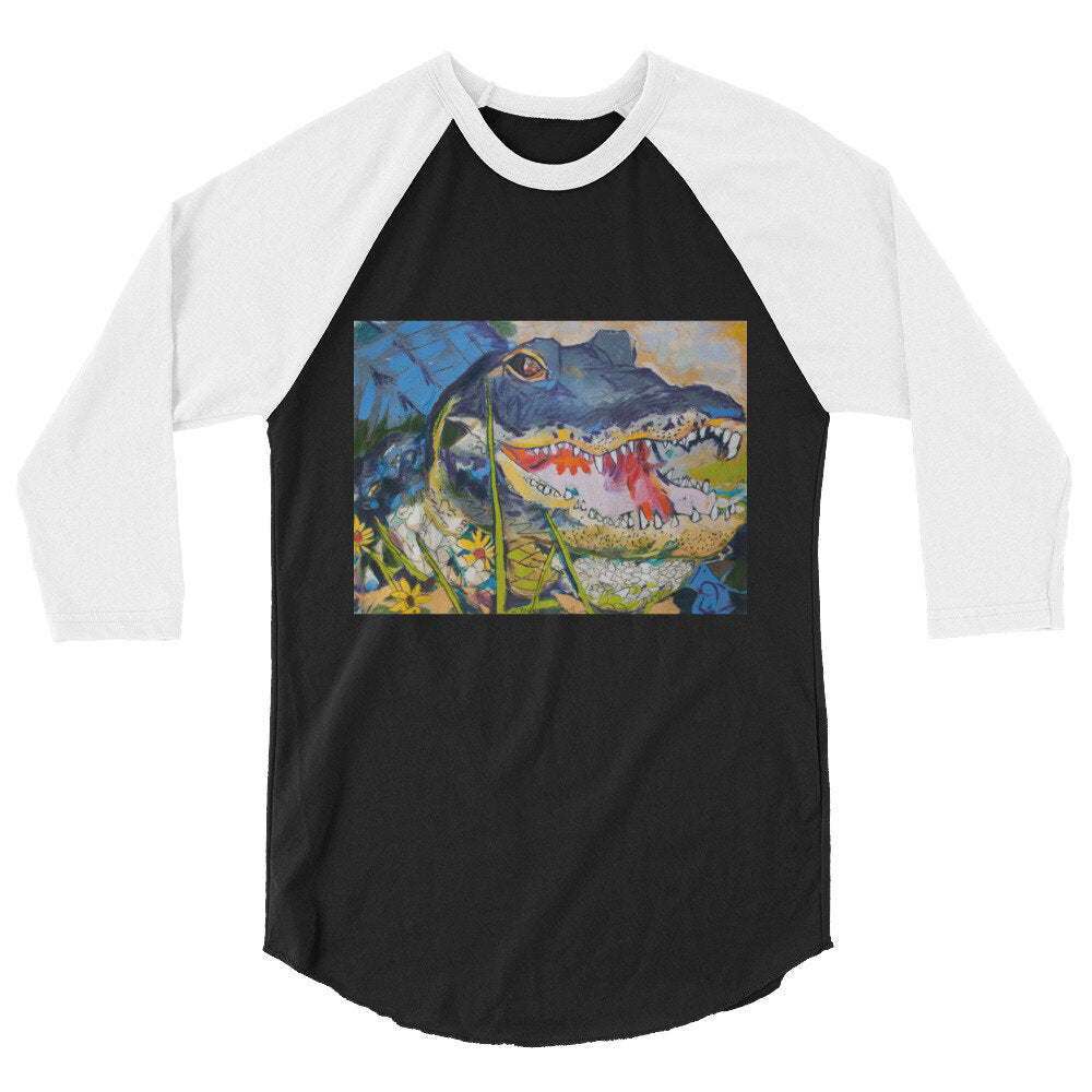 Gator with Wildflowers 3/4 sleeve raglan shirt