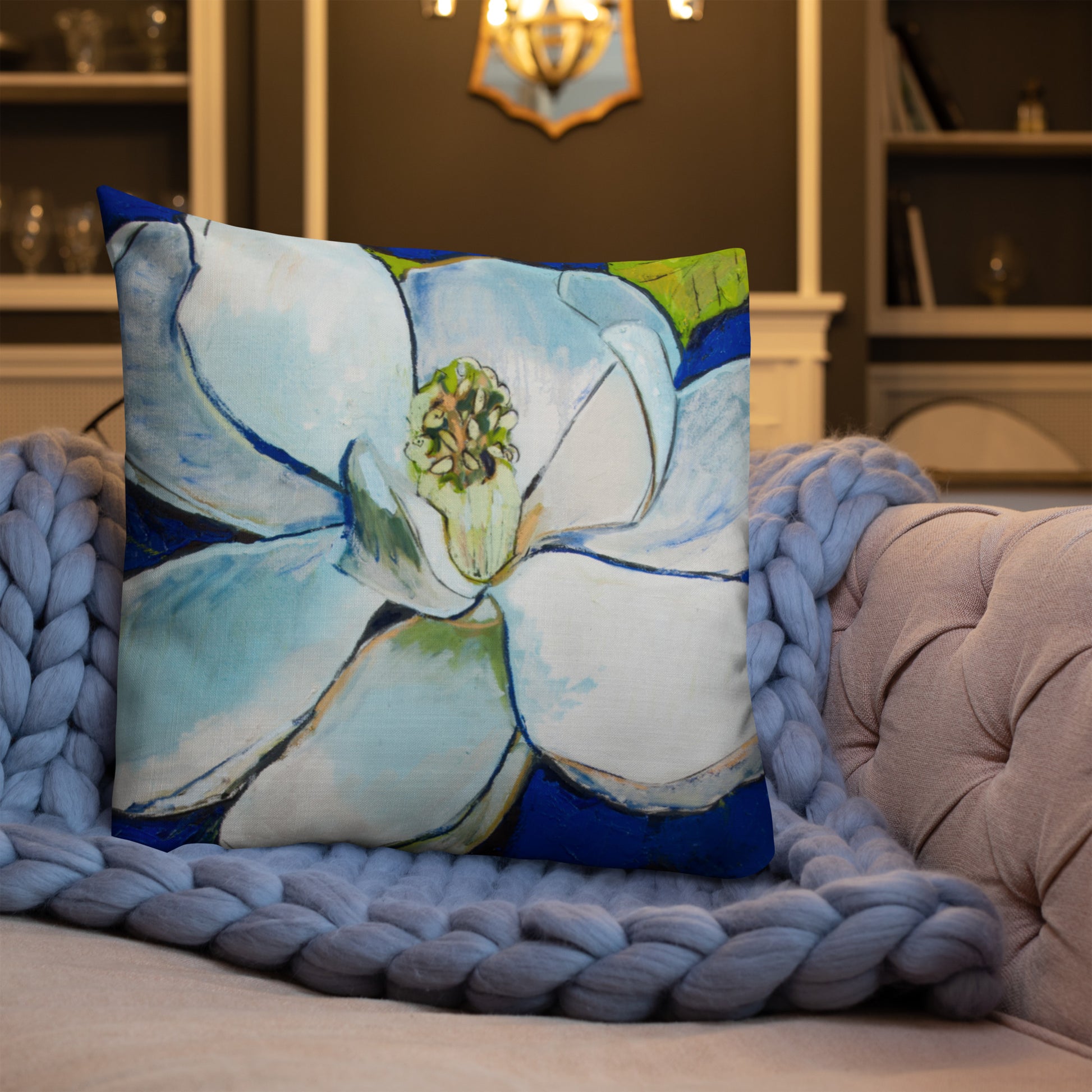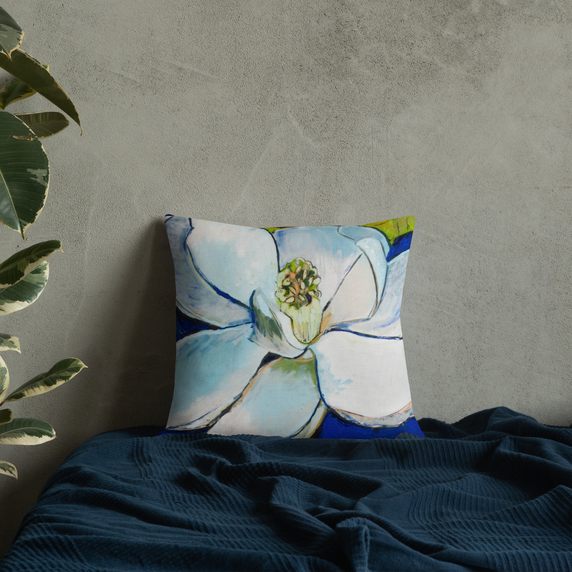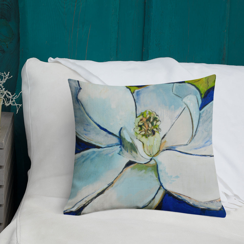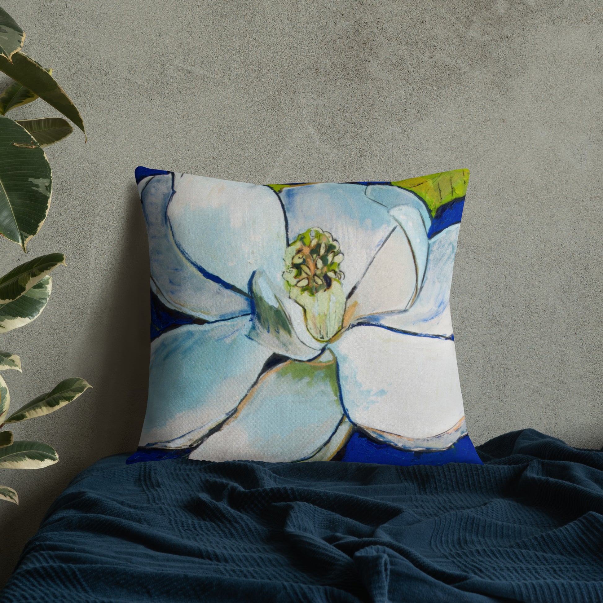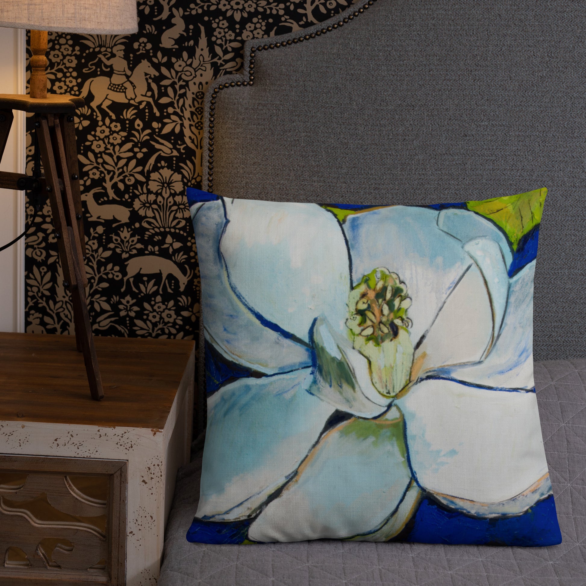 Indigo Magnolia with Cobalt Blue Premium Pillow