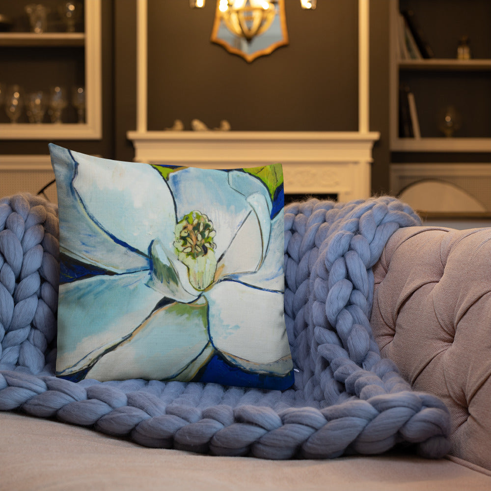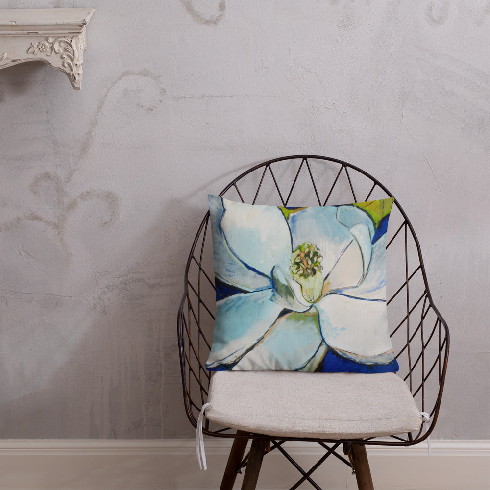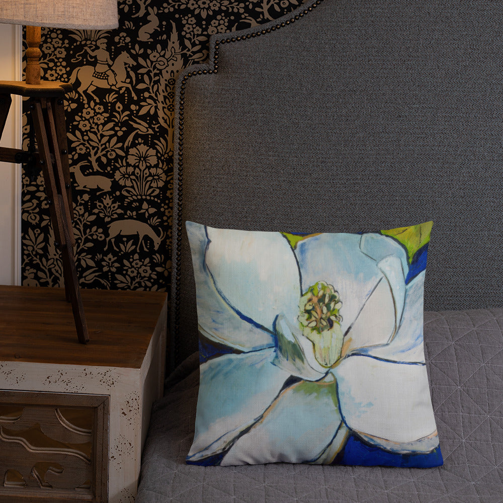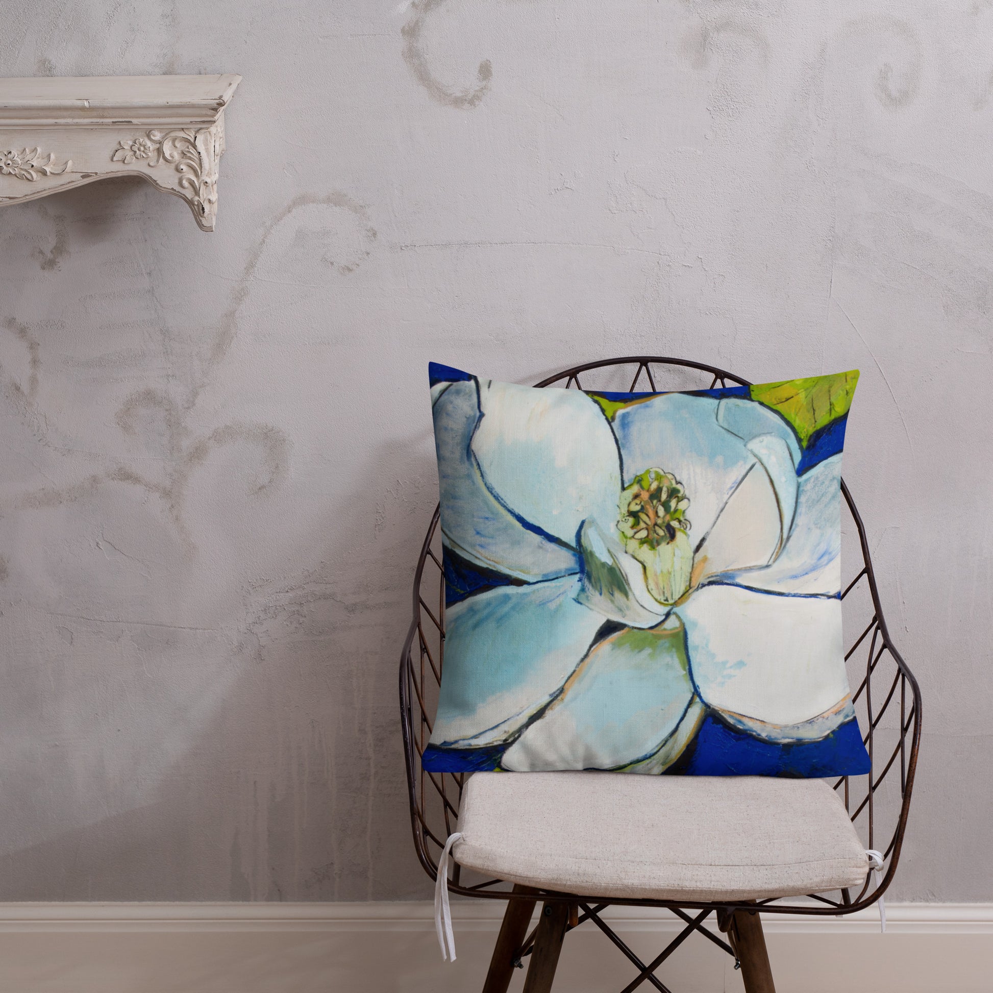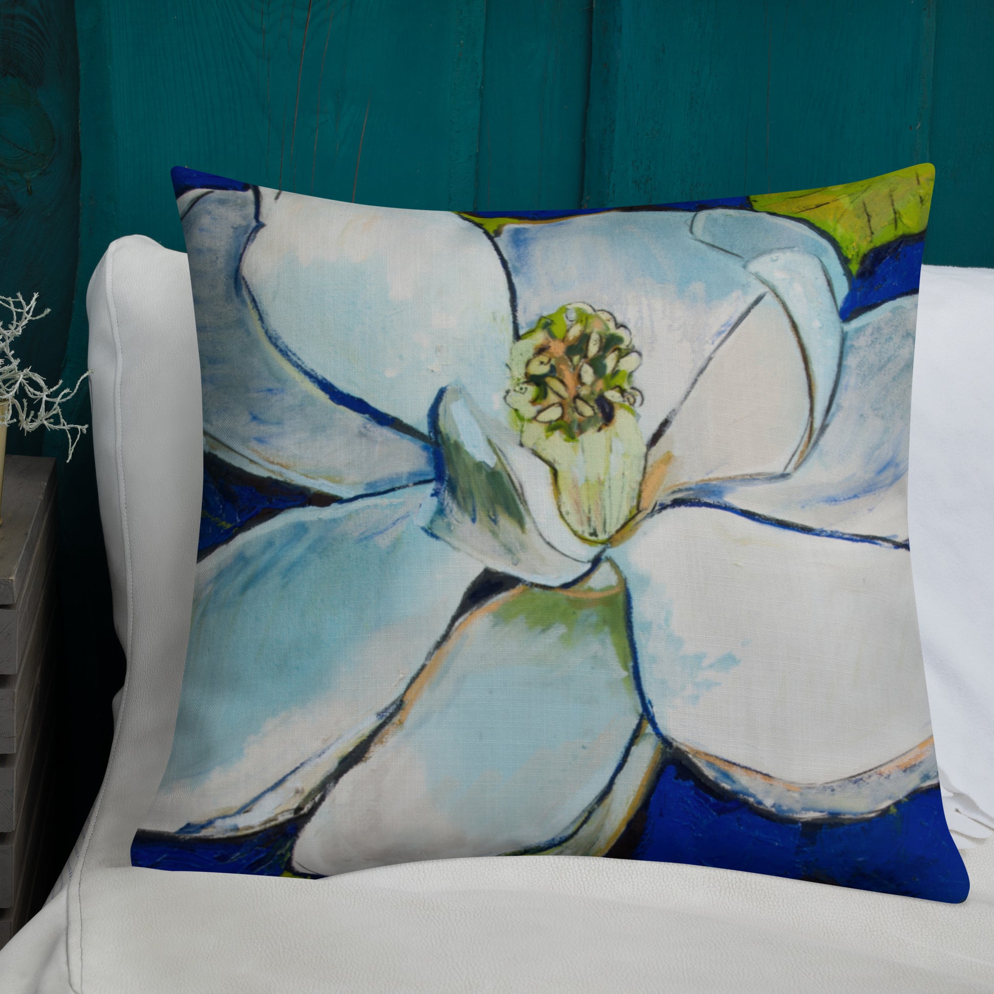 Indigo Magnolia with Cobalt Blue Premium Pillow