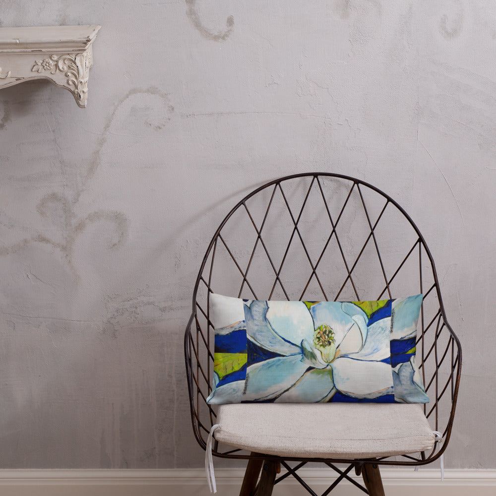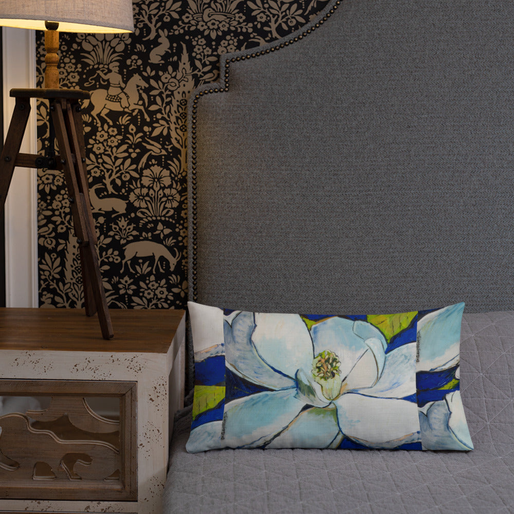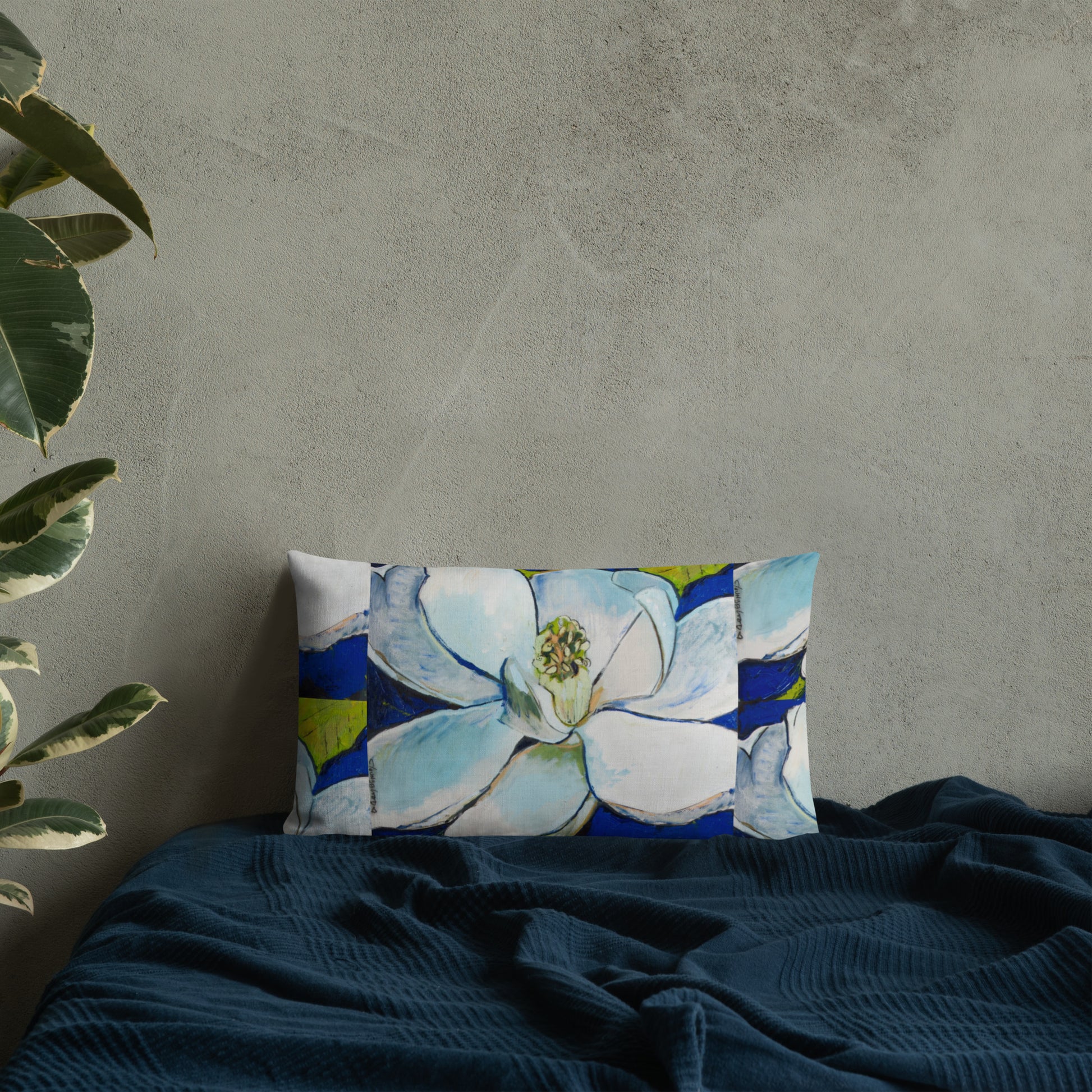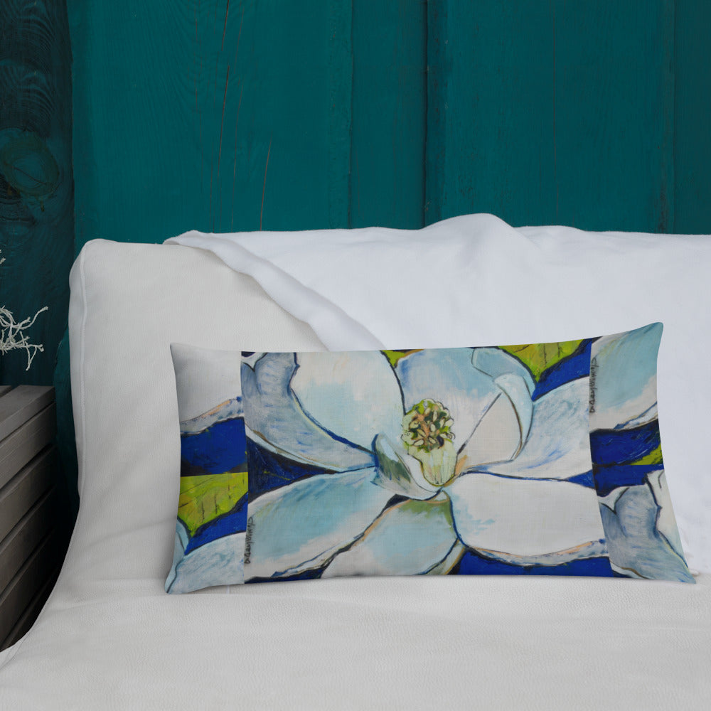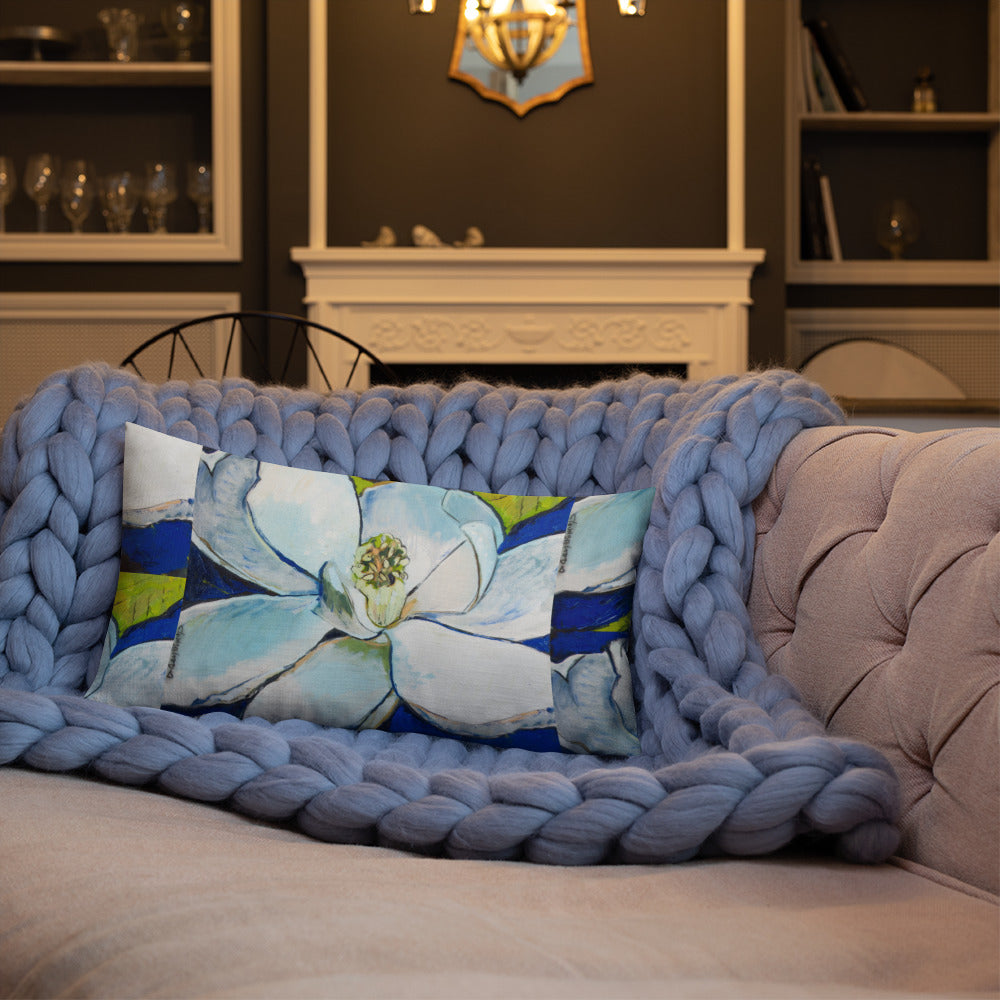 Indigo Magnolia with Cobalt Blue Premium Pillow