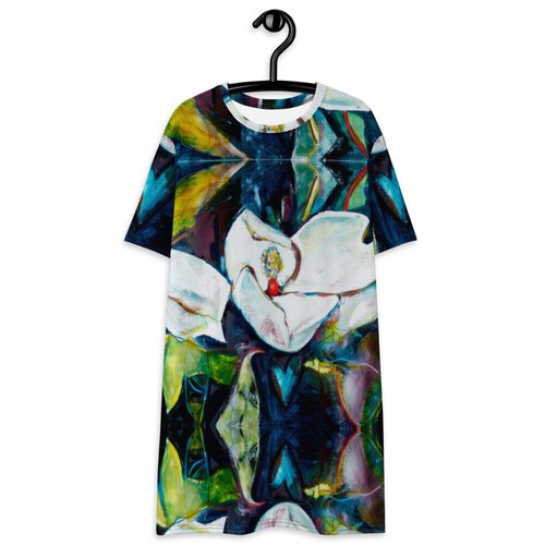 Magnolia and Painted Bunting Pattern T-shirt dress