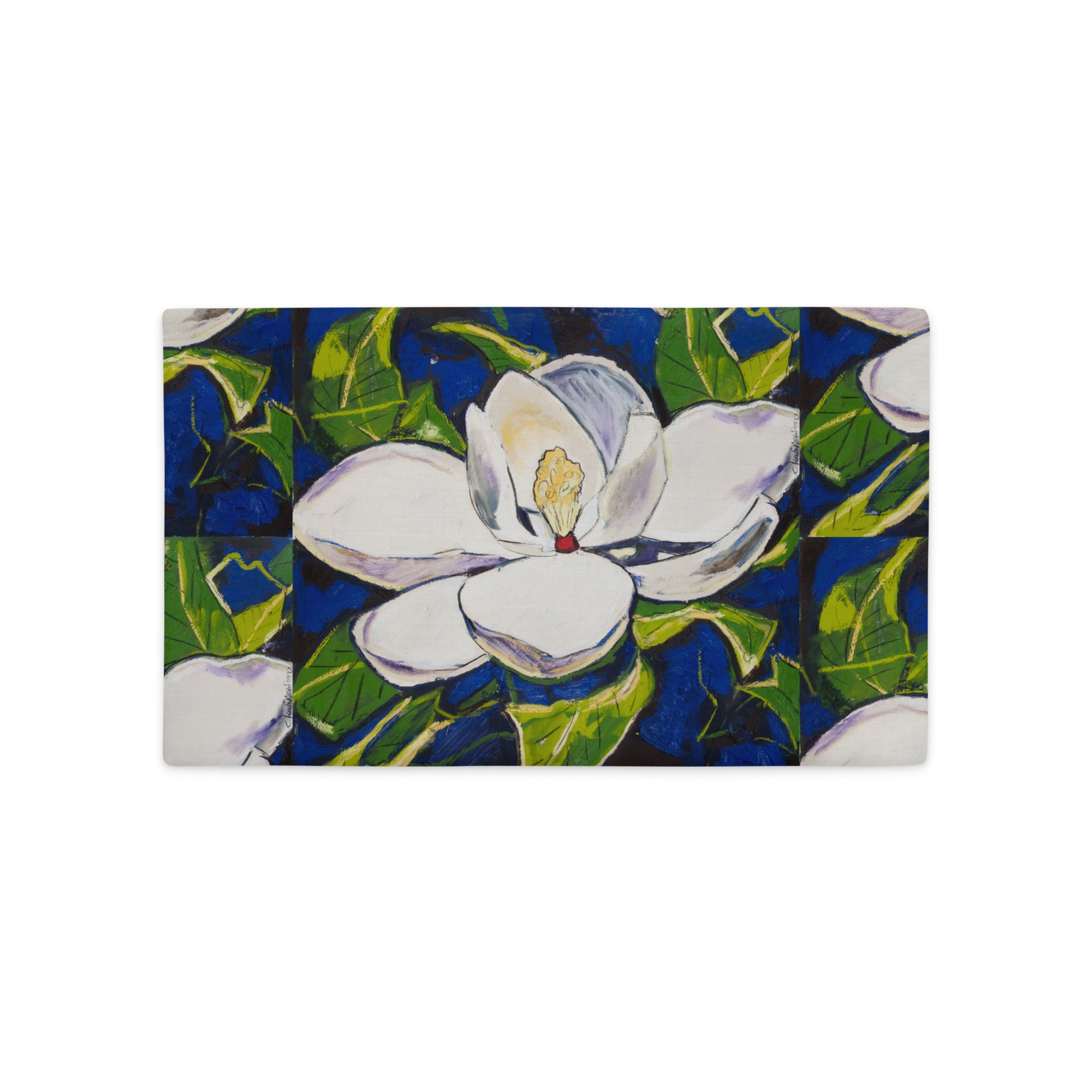 Magnolia with Royal Blue Premium Pillow Case