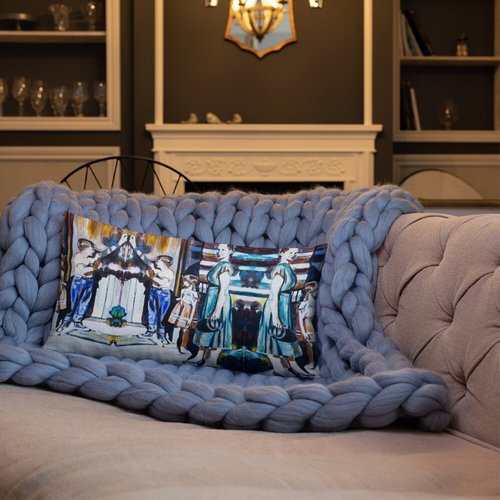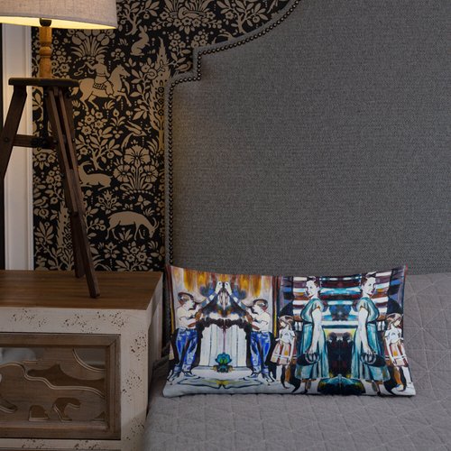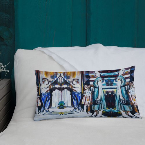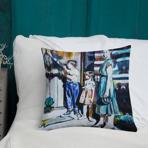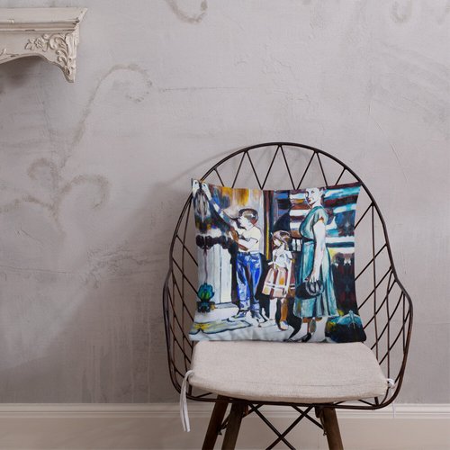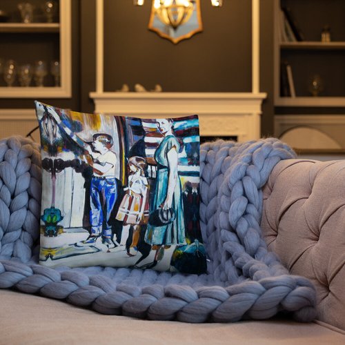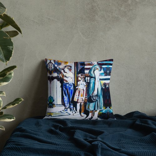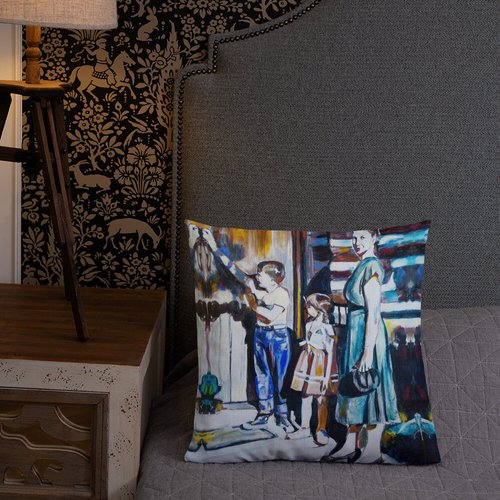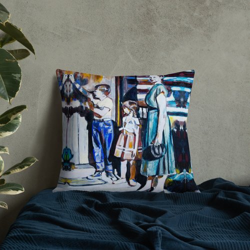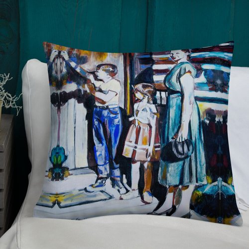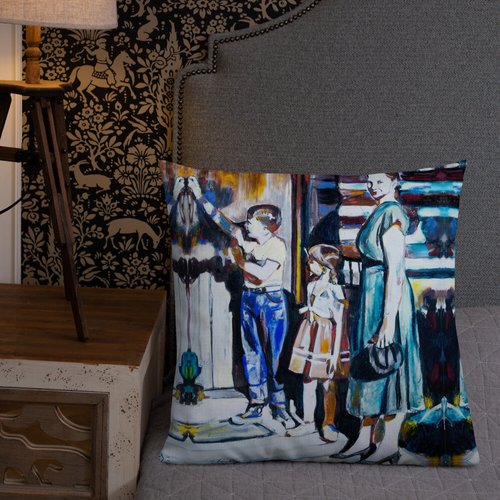 Mother with Children at the Door Pattern Premium Pillow