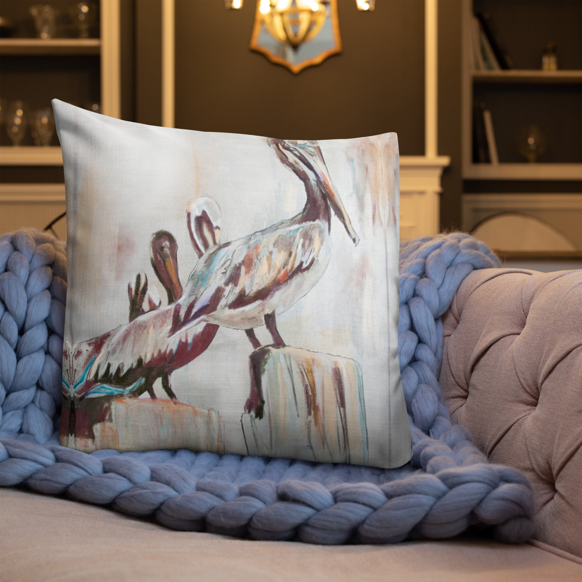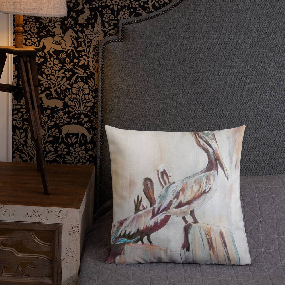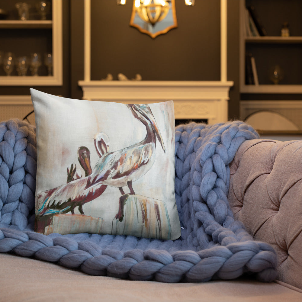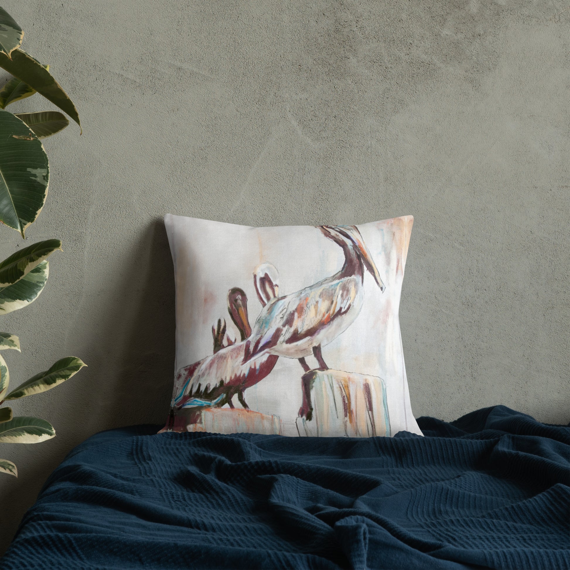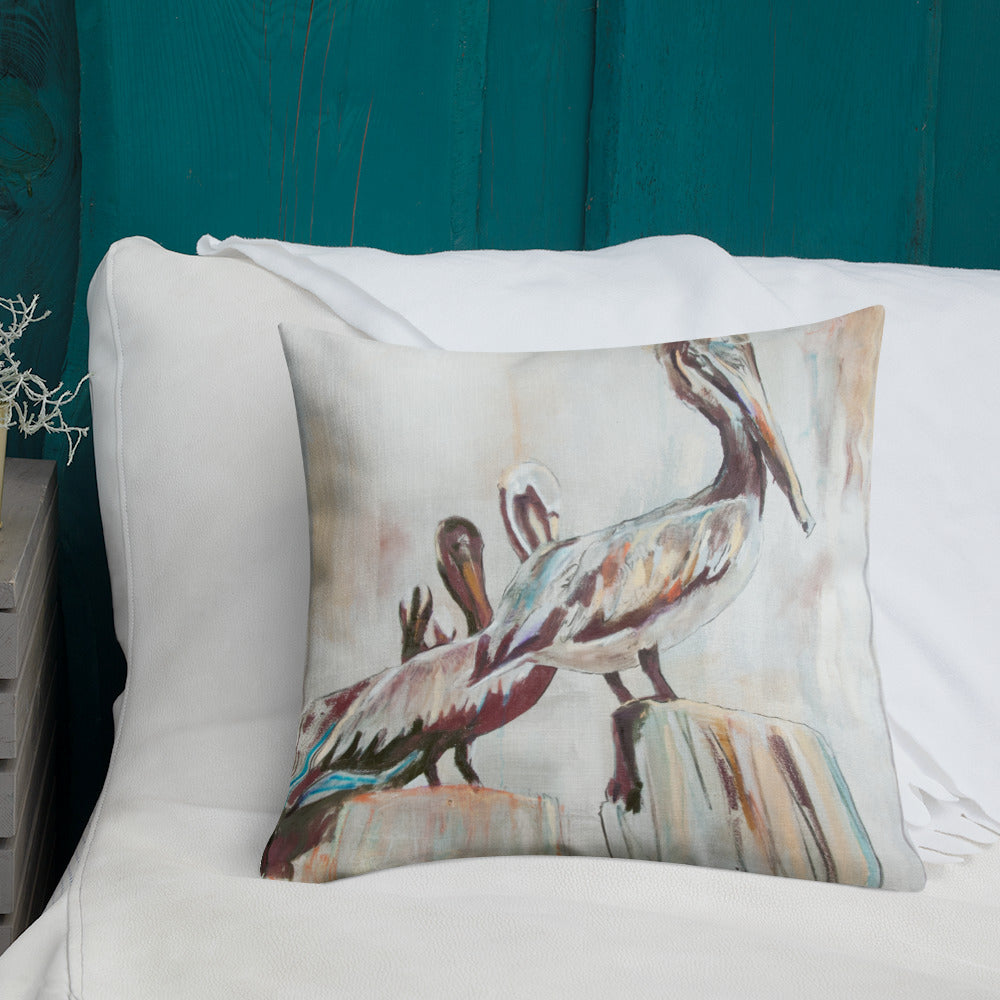 Pelicans in the Fog with Metallic Silver Premium Pillow