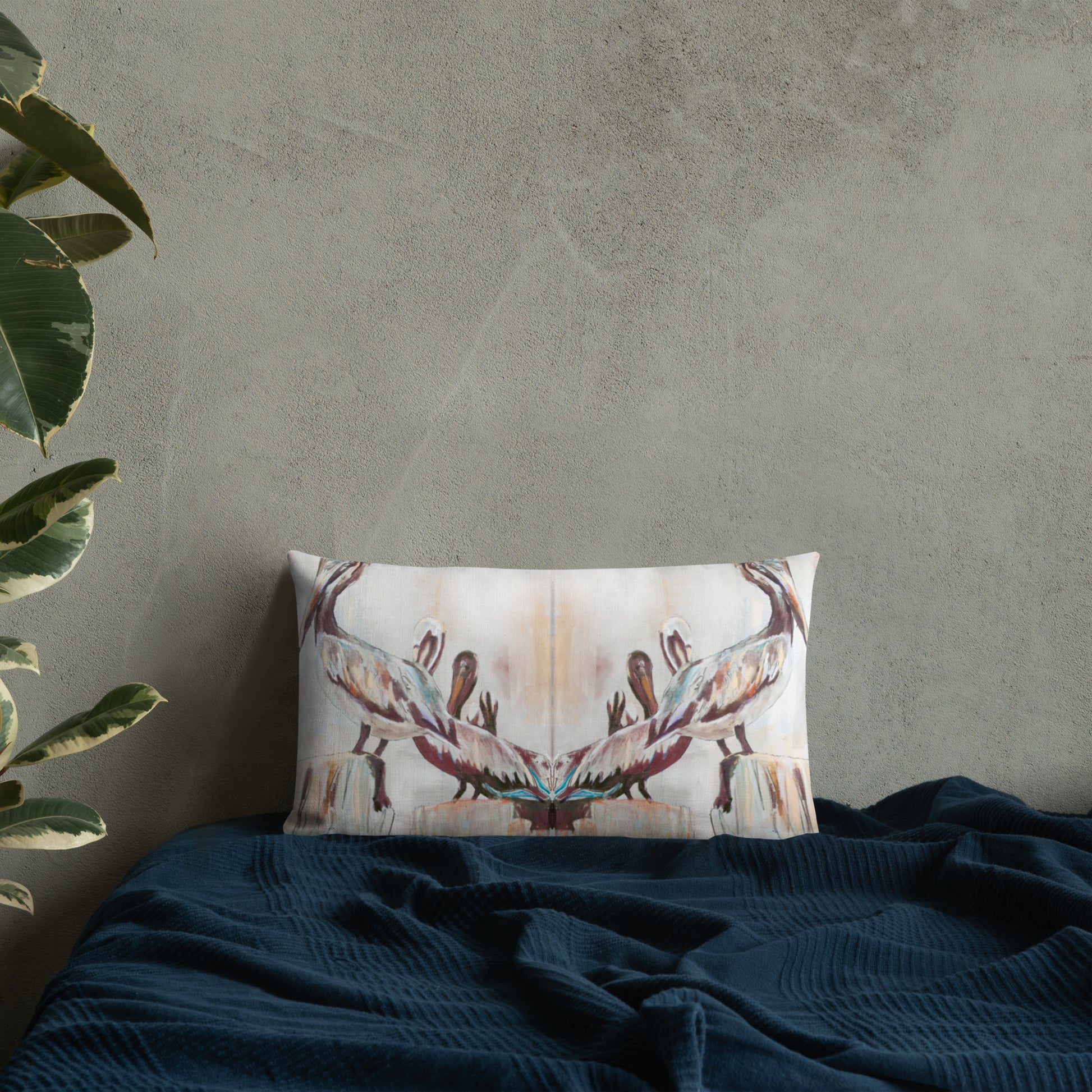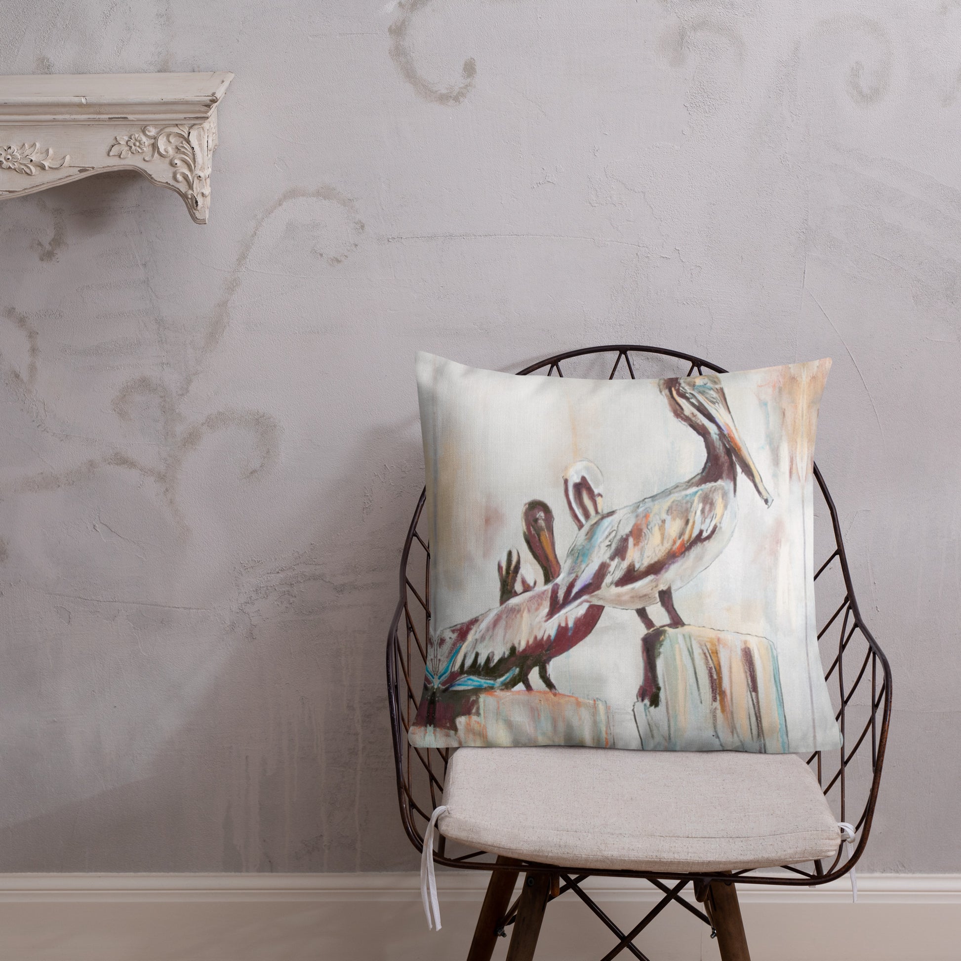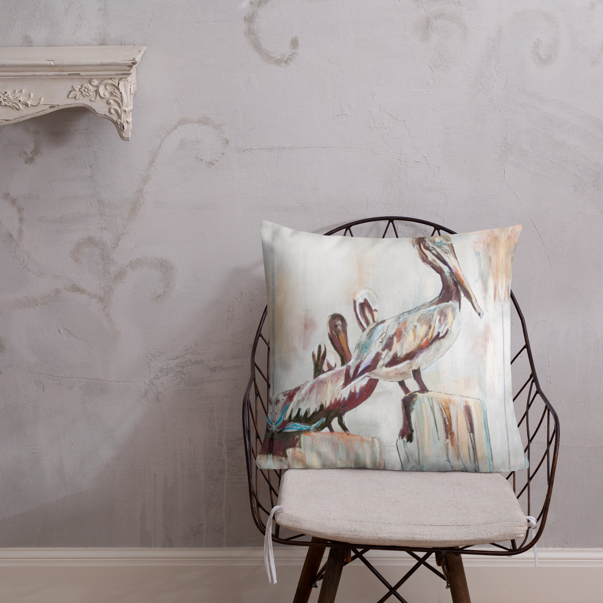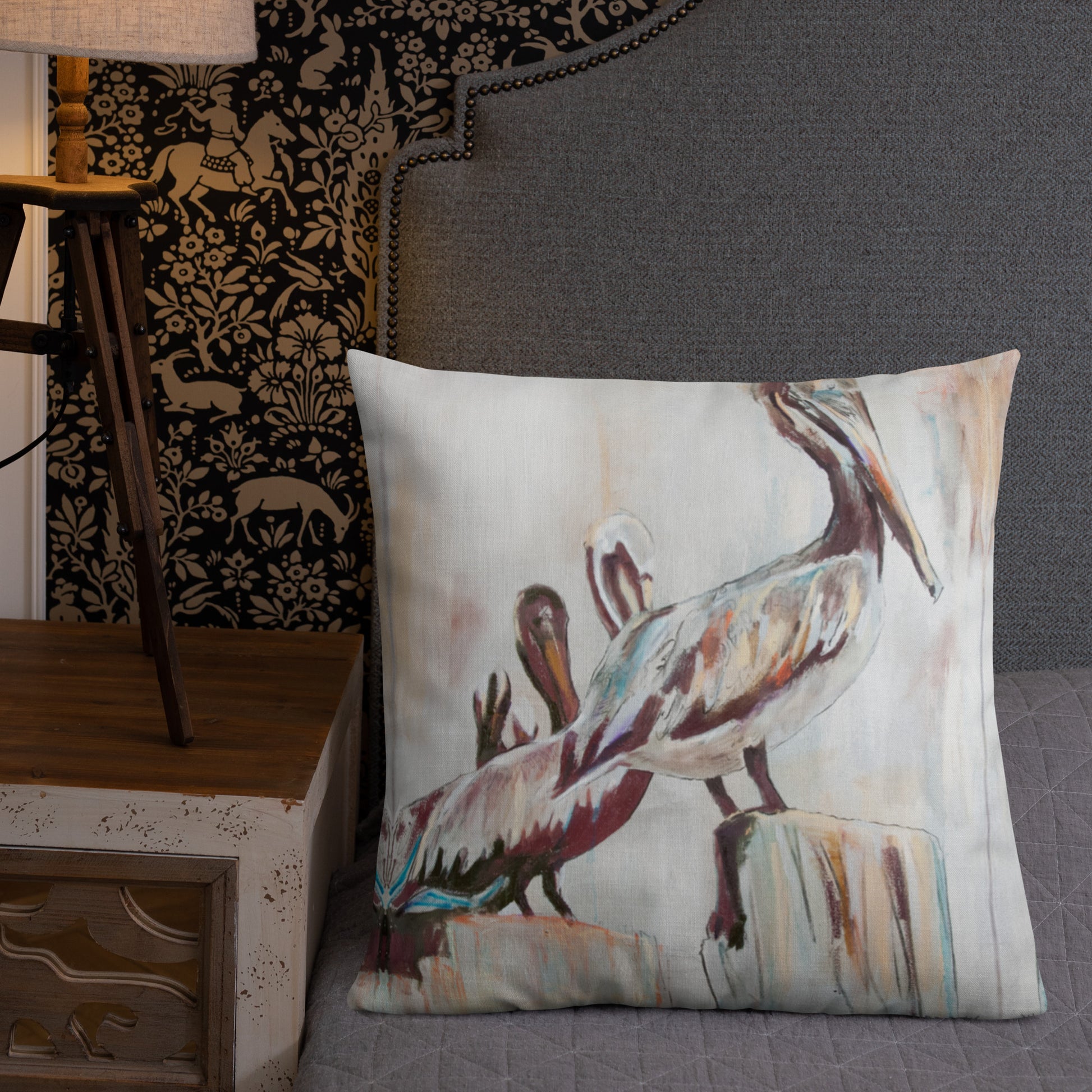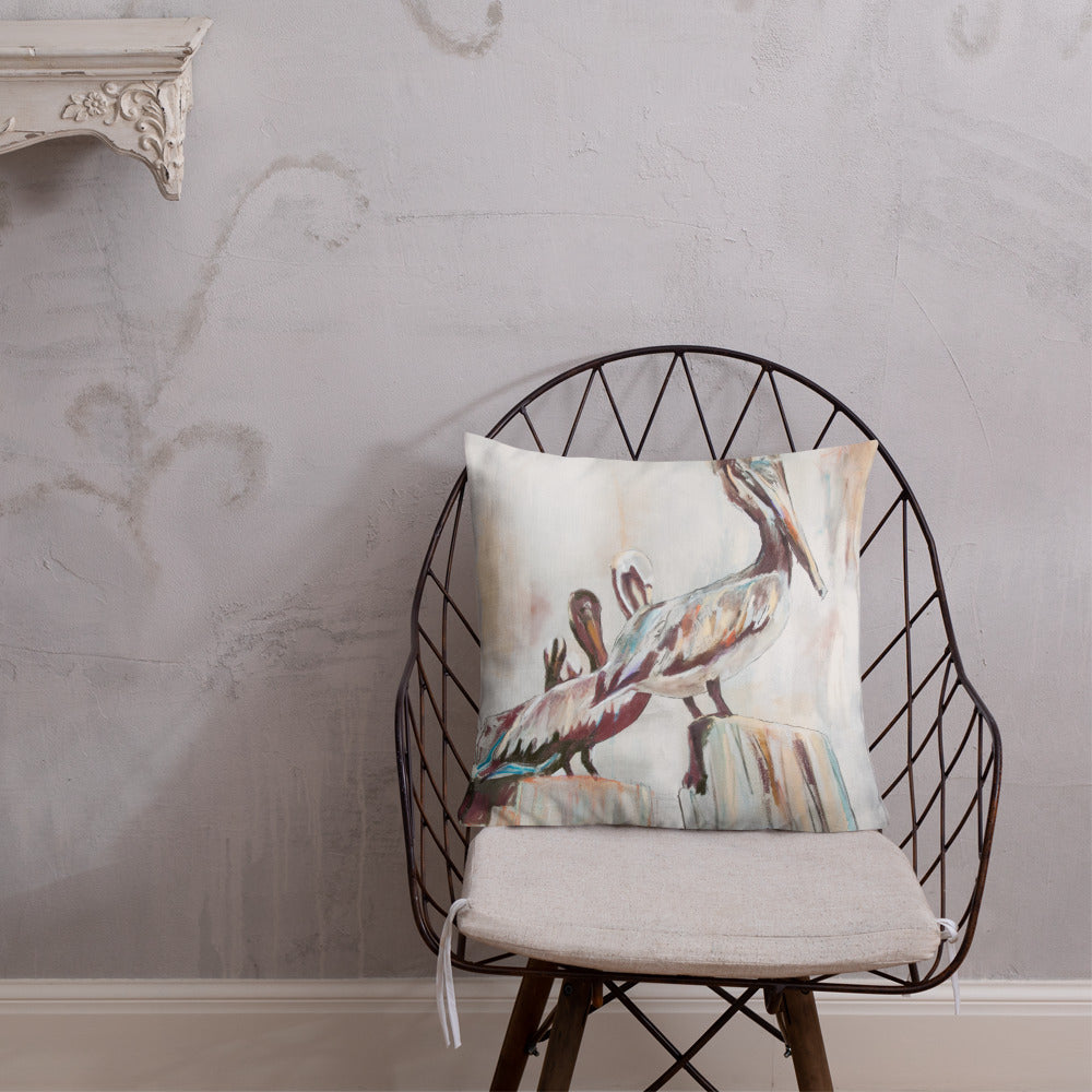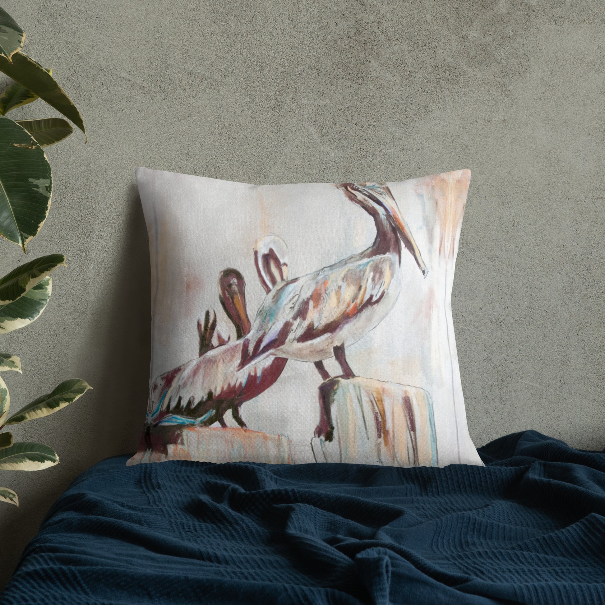 Pelicans in the Fog with Metallic Silver Premium Pillow