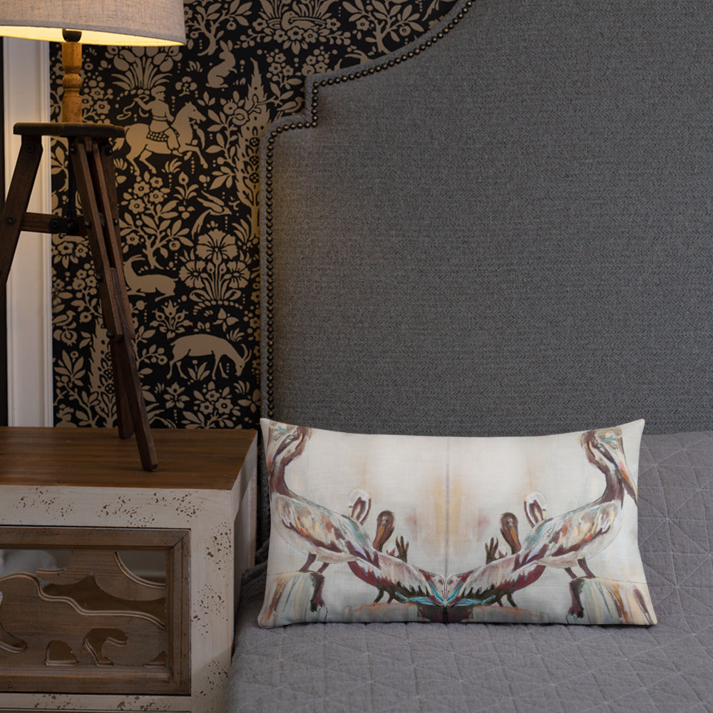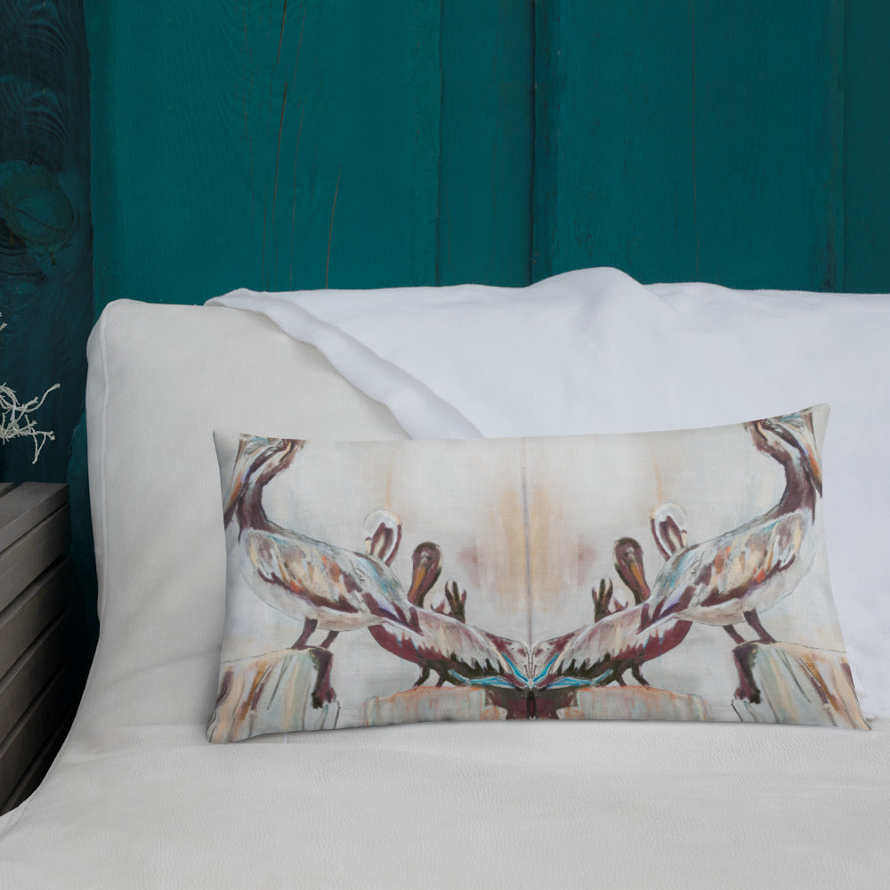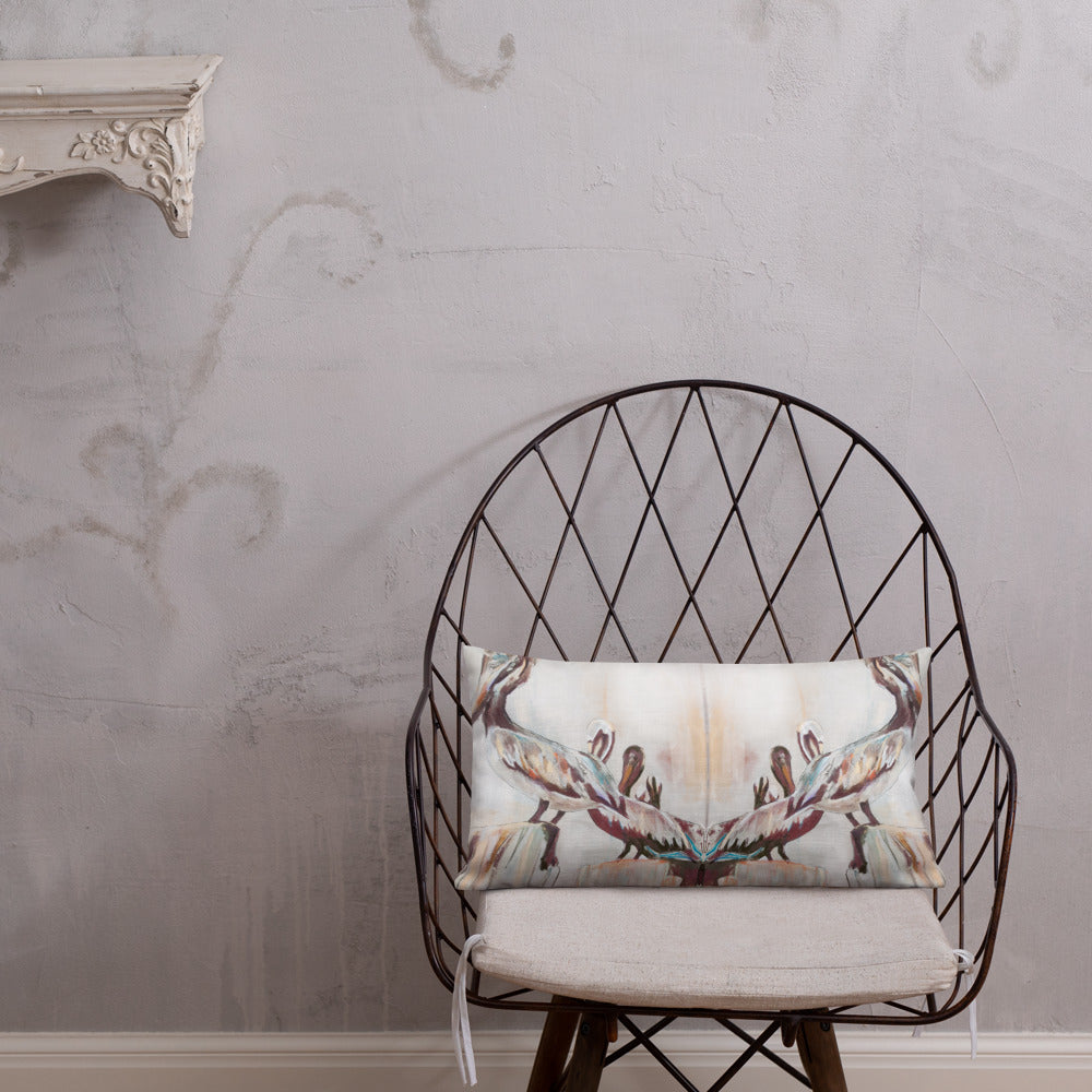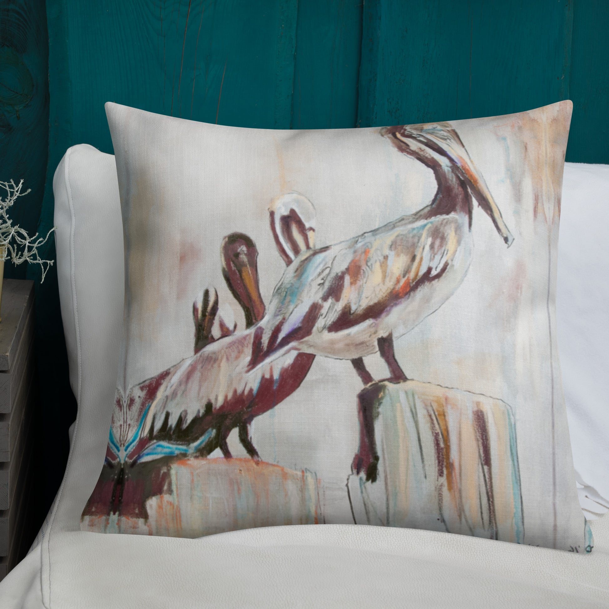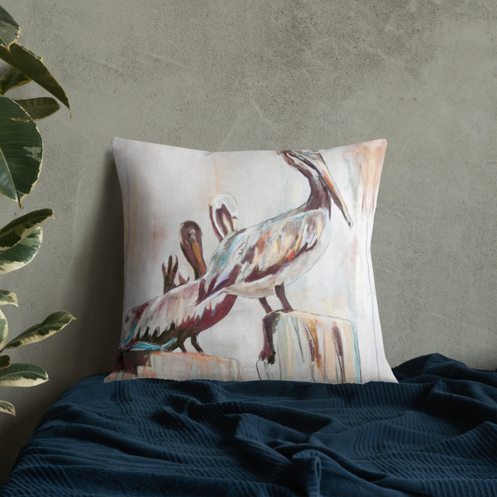 Pelicans in the Fog with Metallic Silver Premium Pillow