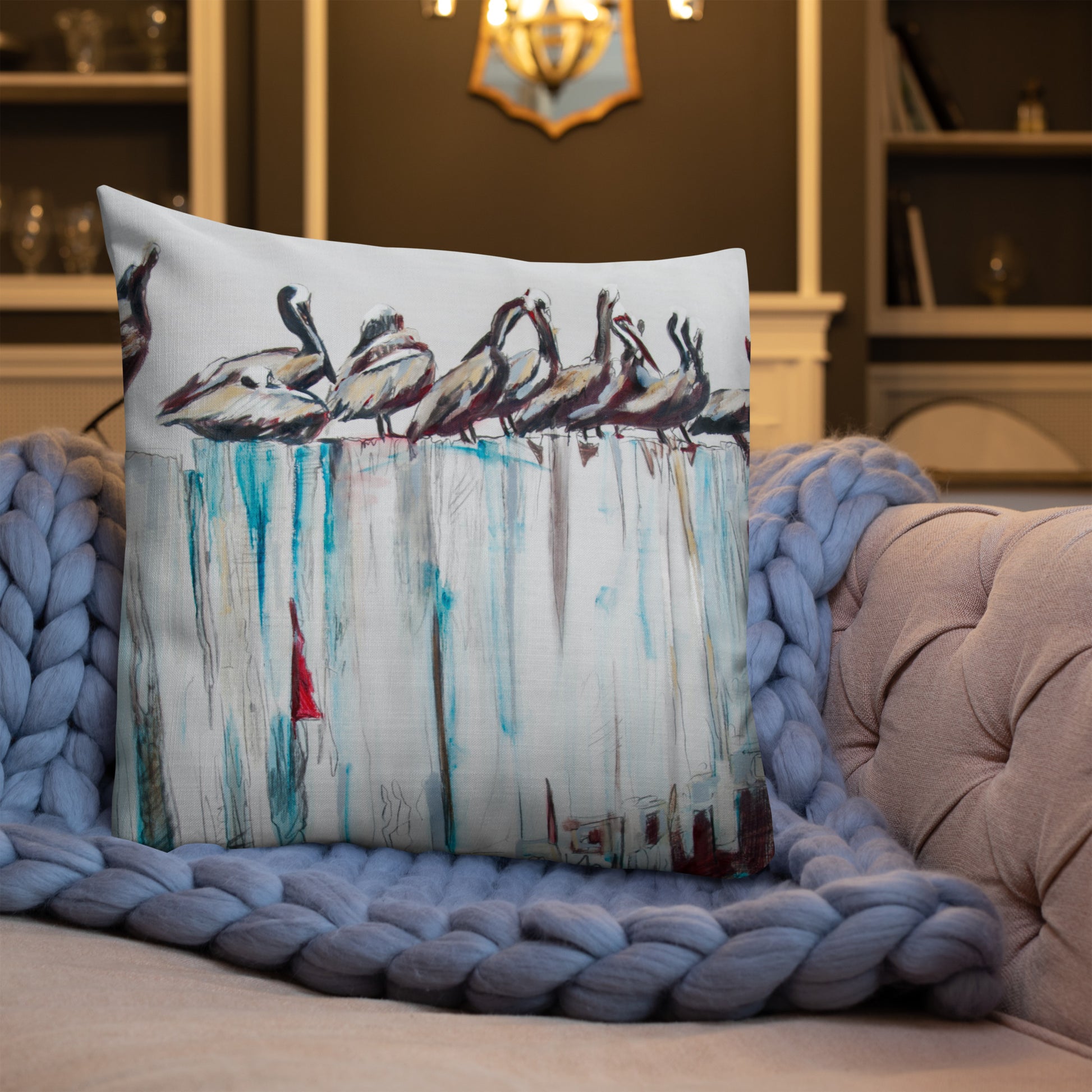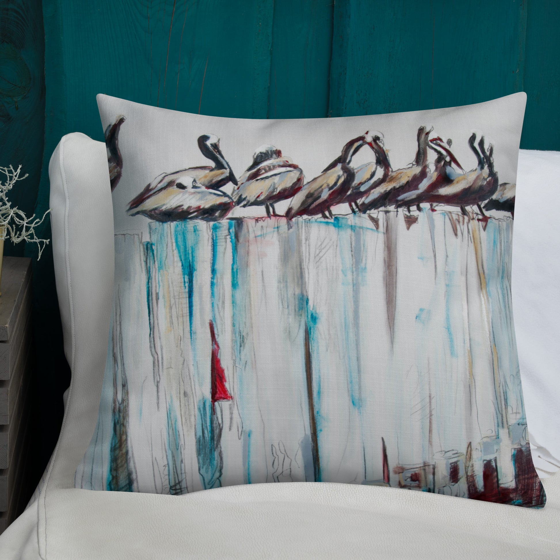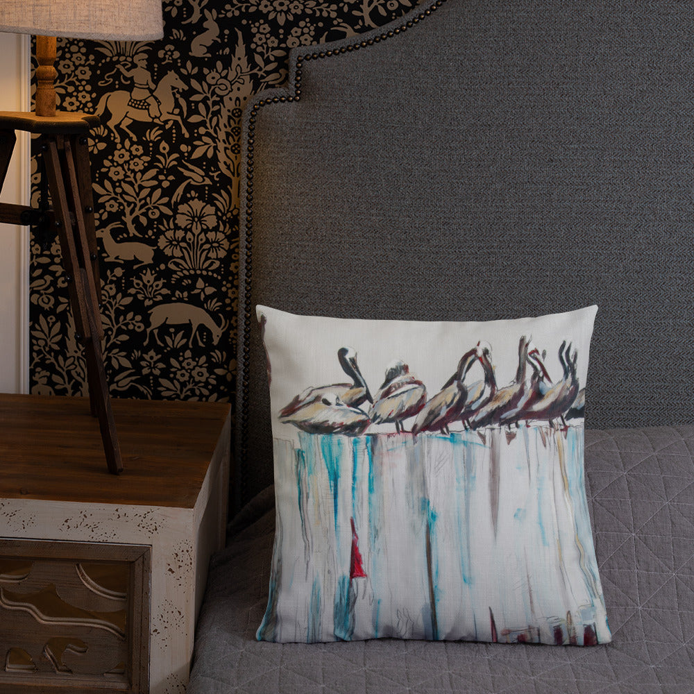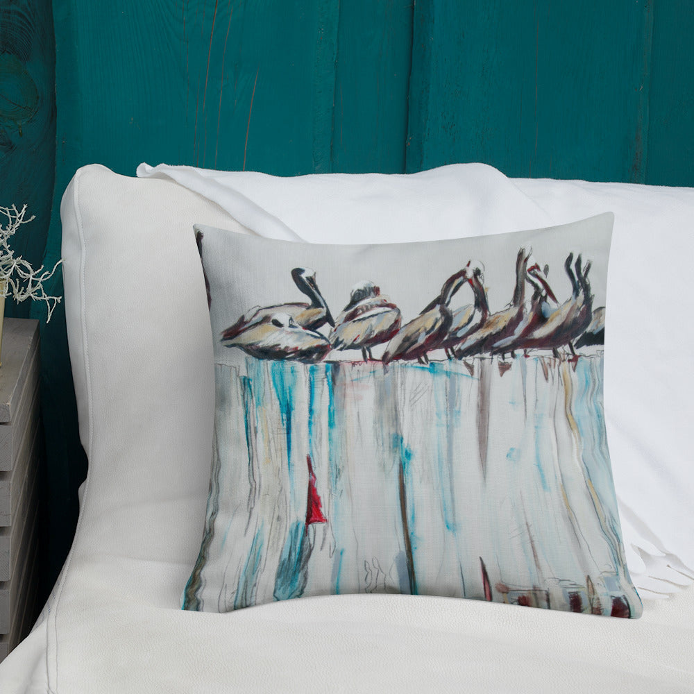 Pelicans on the Pier III Premium Pillow