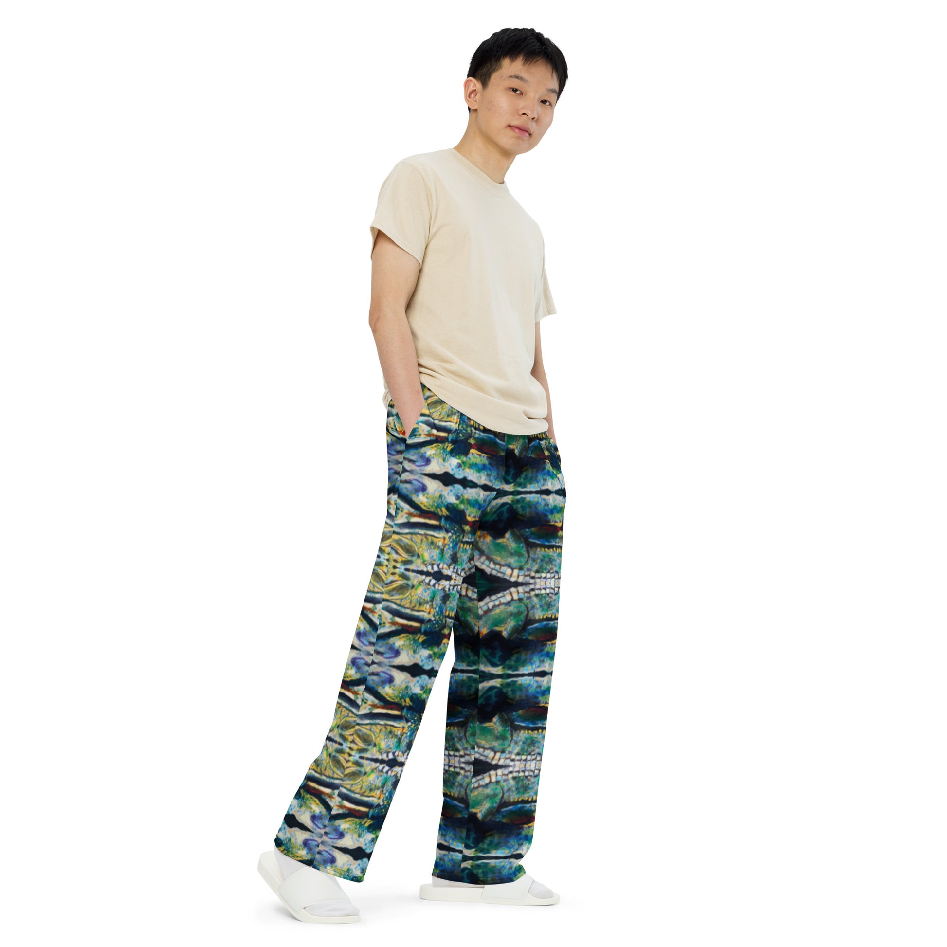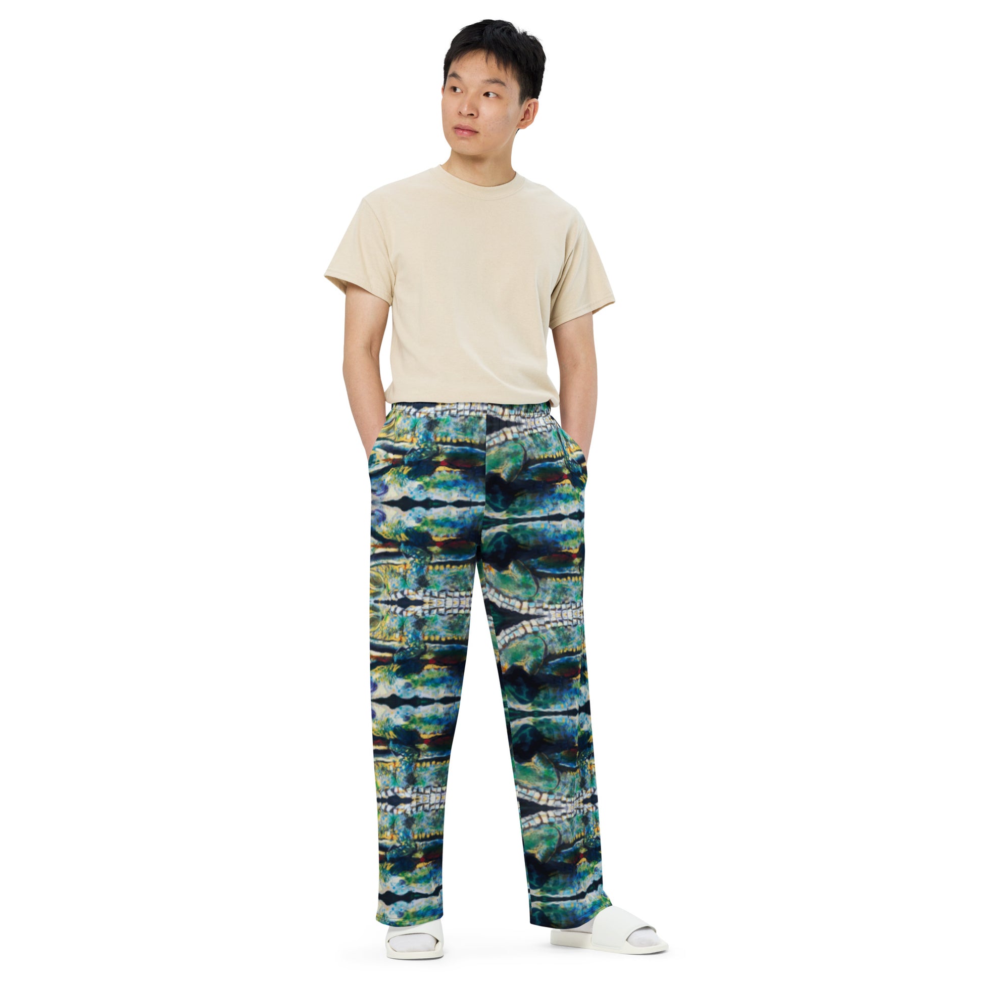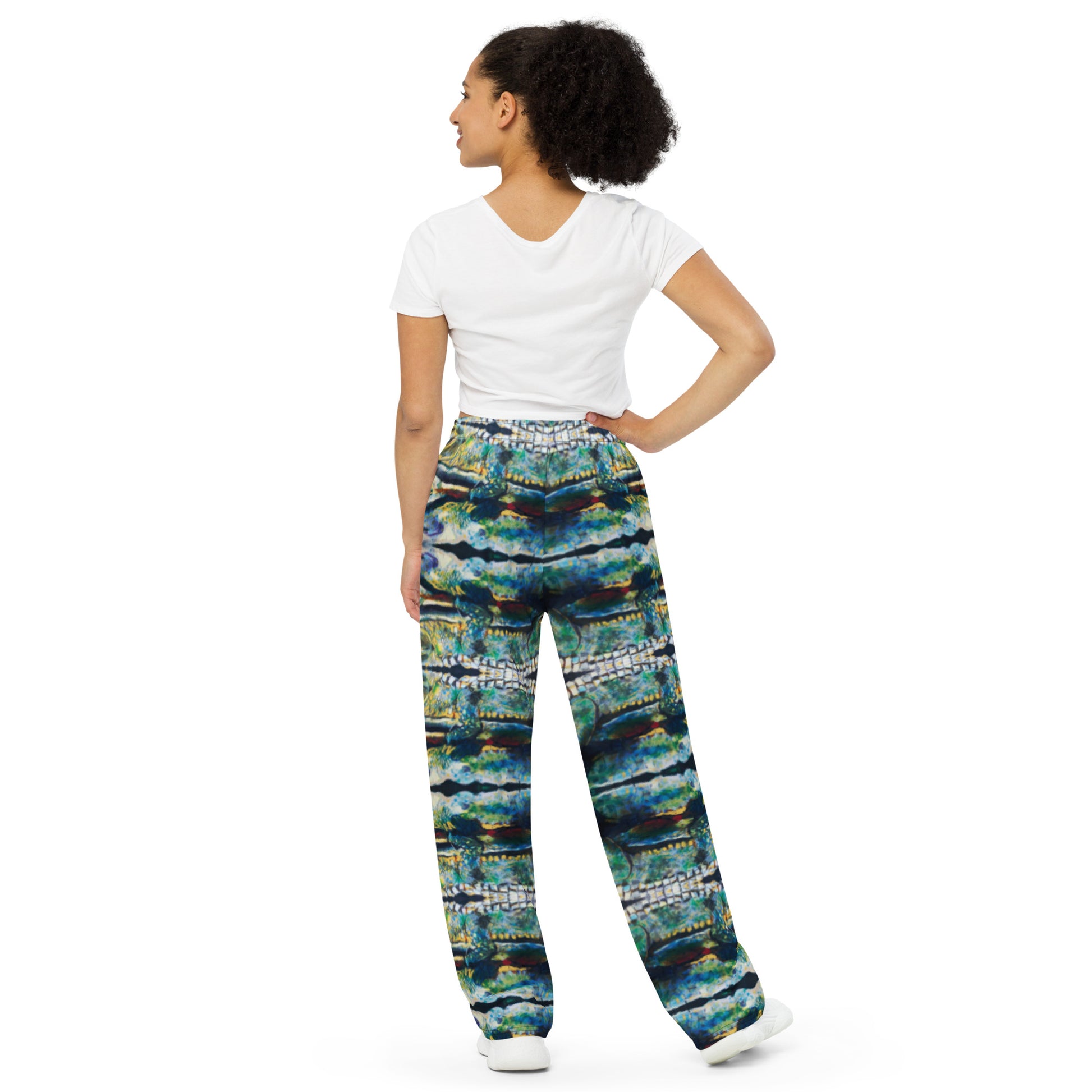 Psychedelic Gator with Reflection All-over print unisex wide-leg pants