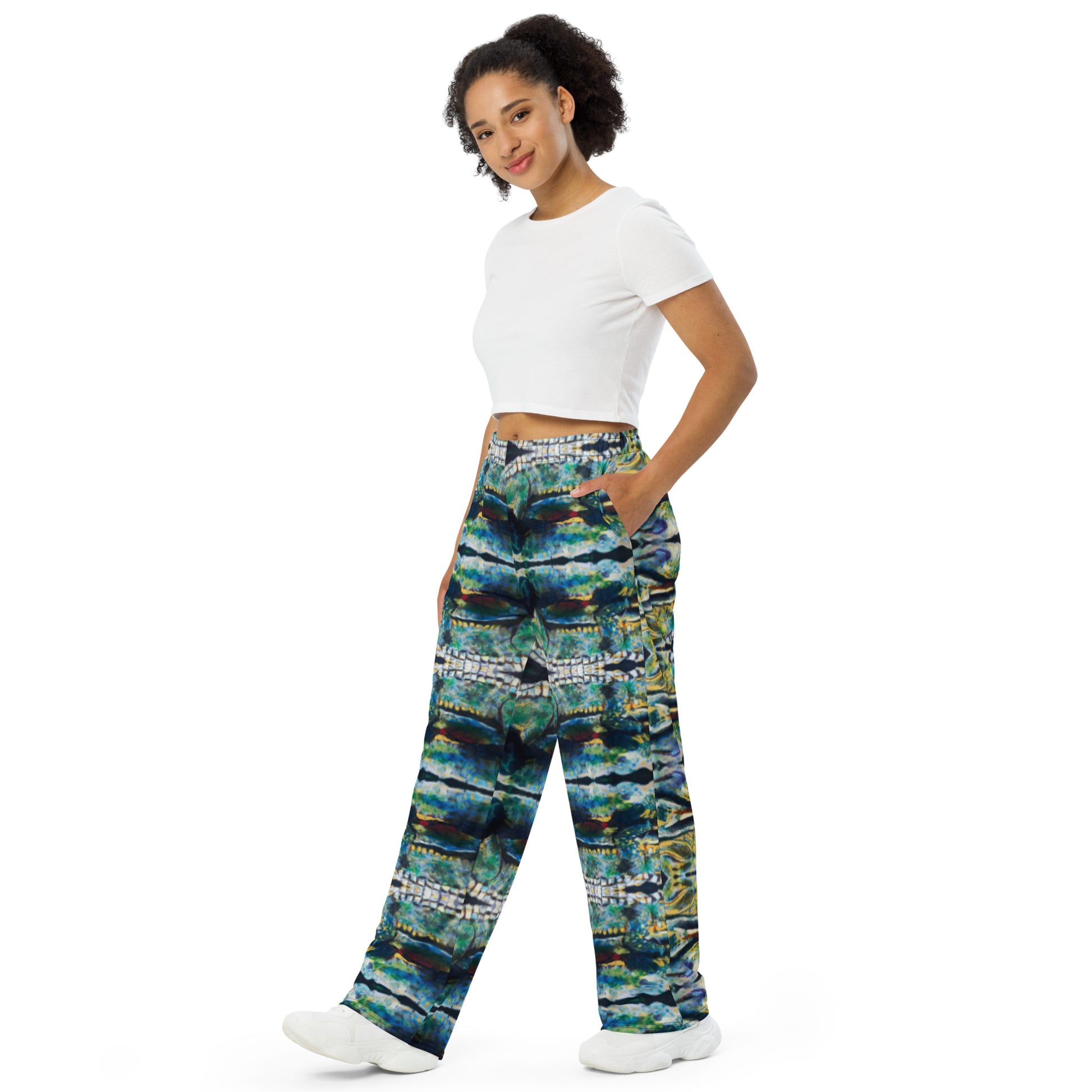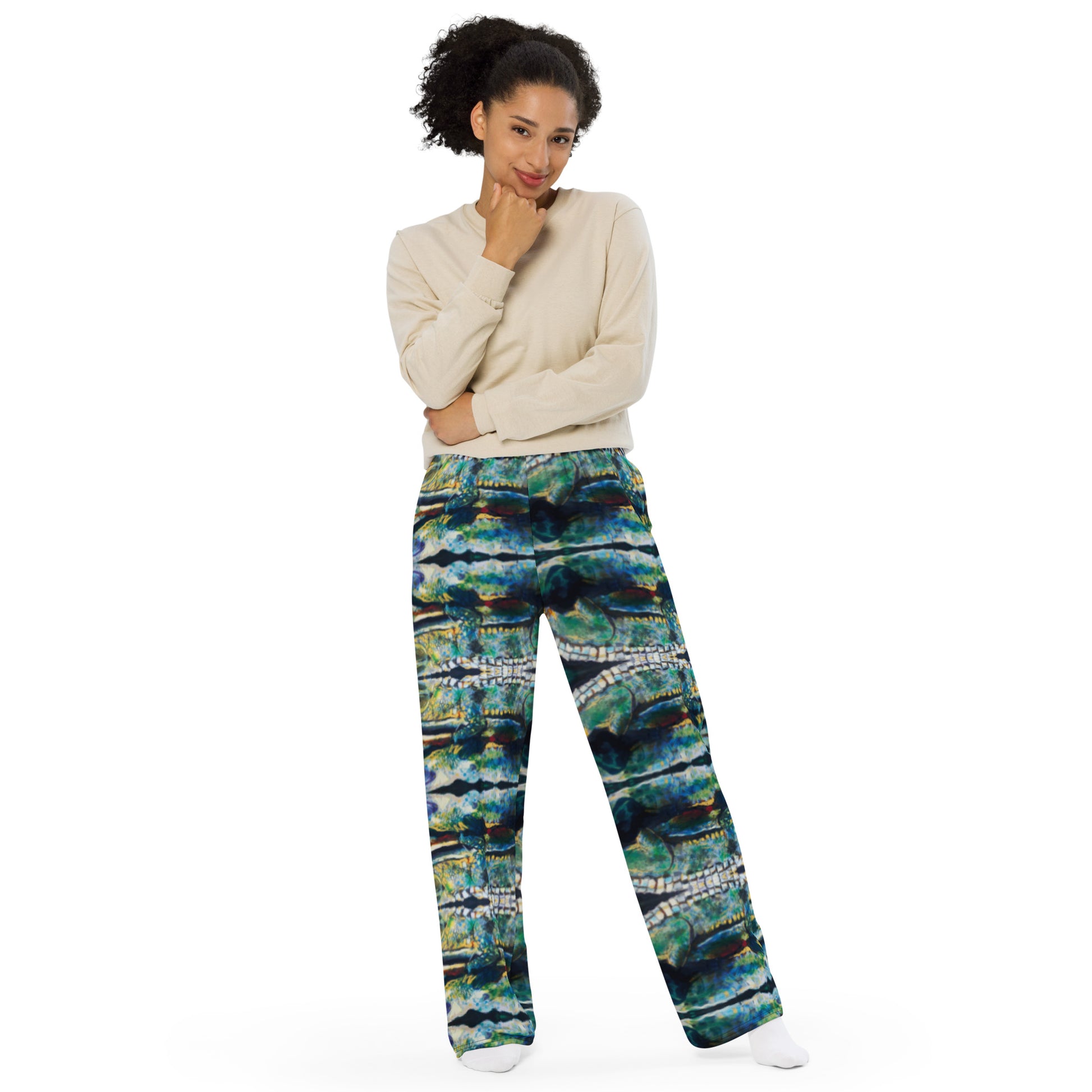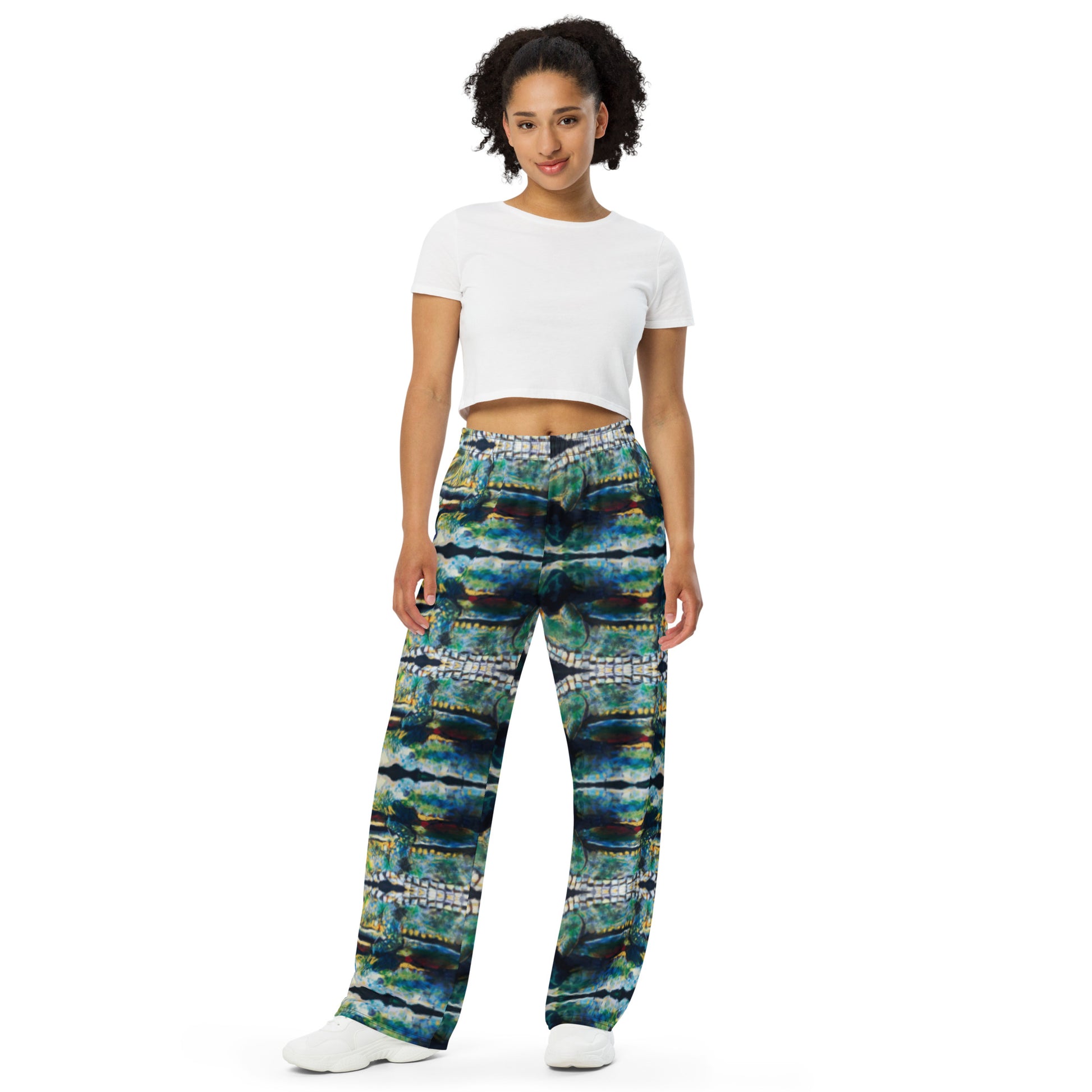 Psychedelic Gator with Reflection All-over print unisex wide-leg pants