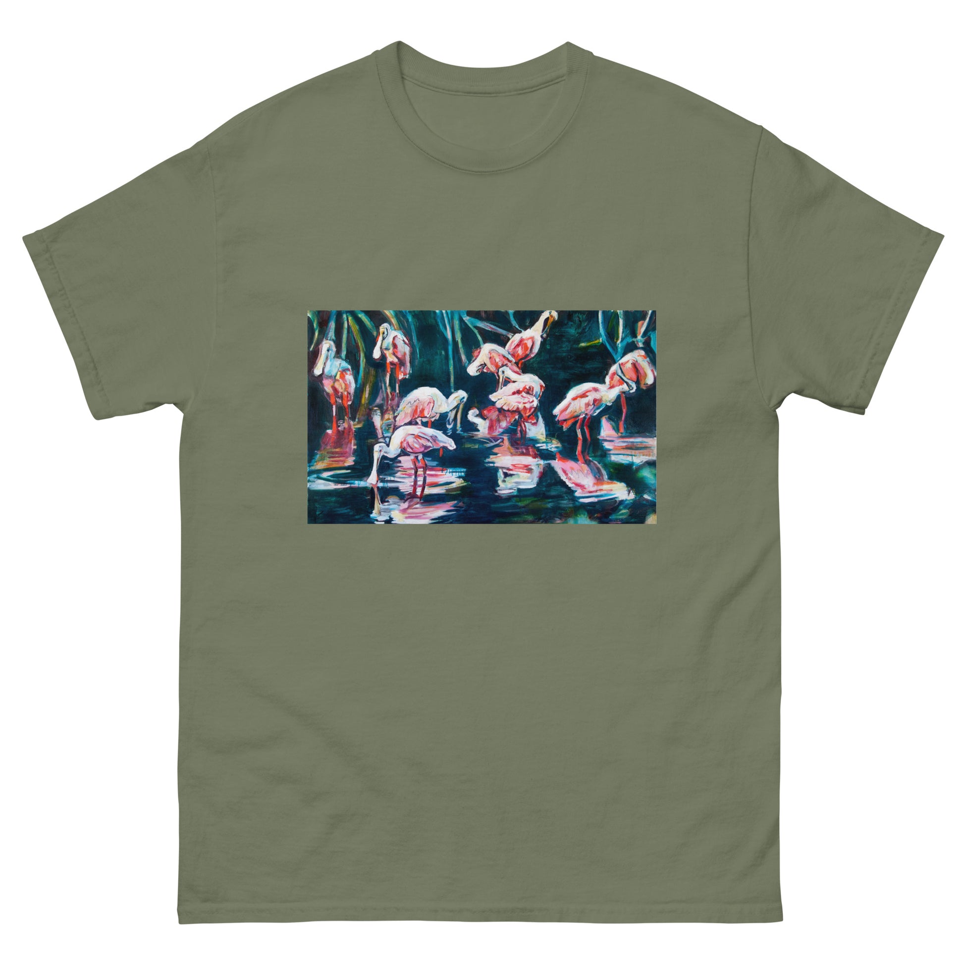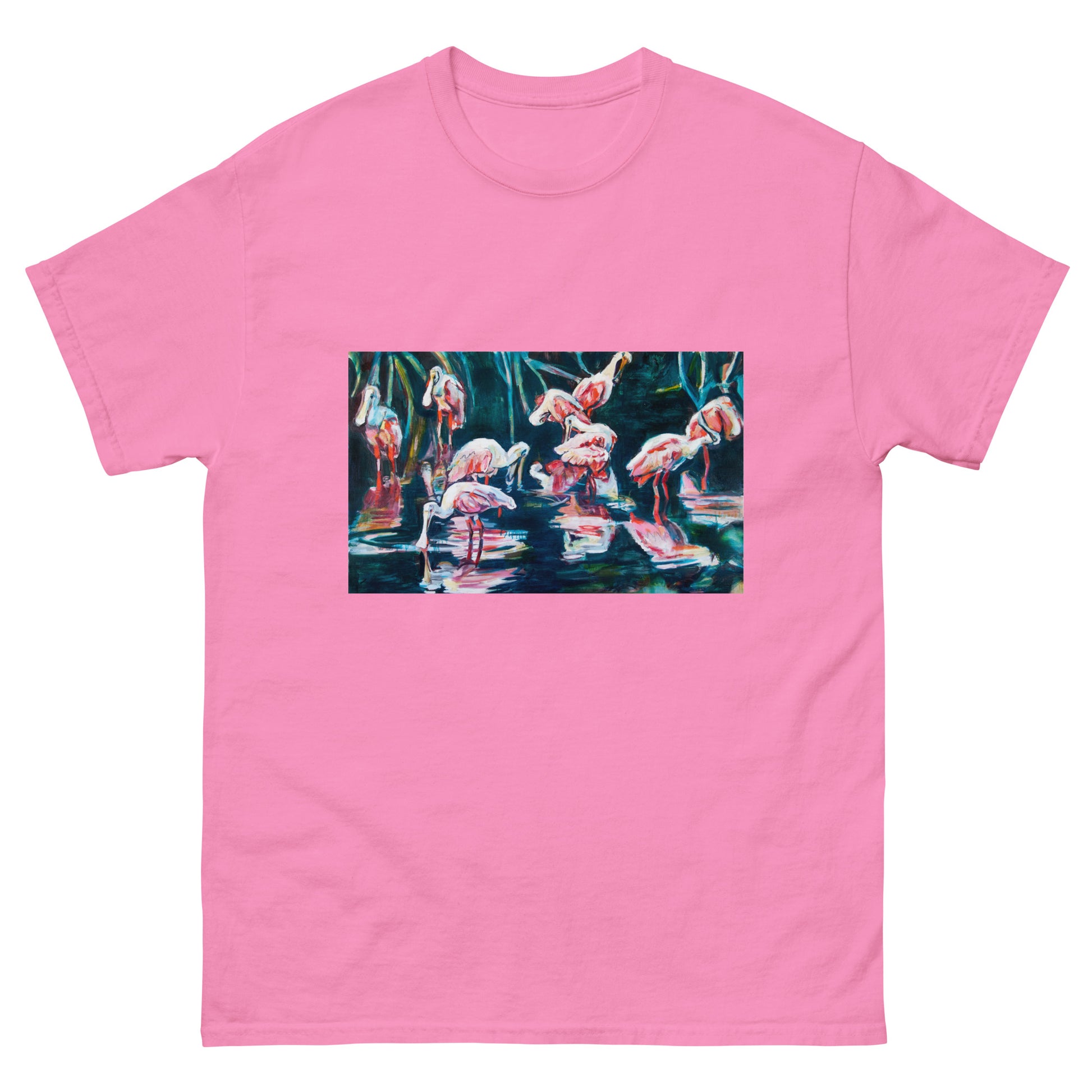 Roseate Spoonbills with their Reflection in the Swamp Unisex classic tee