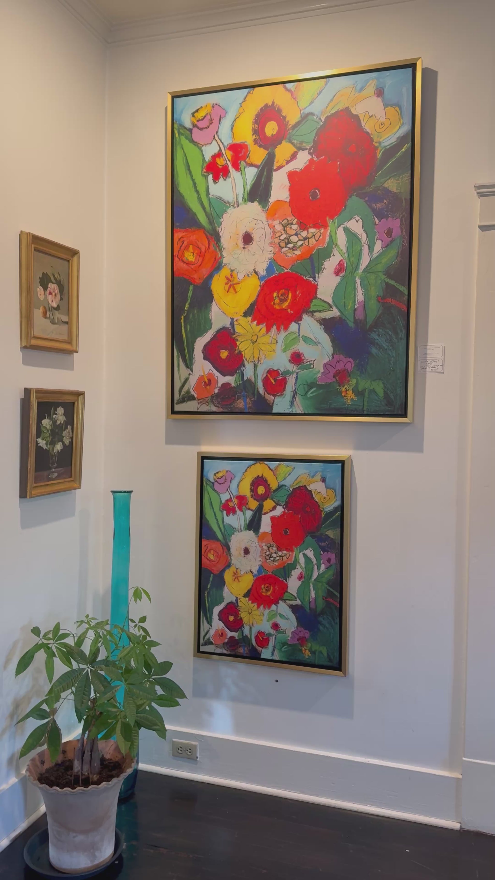 Do you love vibrant colors? Light up any space with this piece inspired by Summer Zinnias by bringing in the vivid hues of outdoor life. I choose a 2.5”gold floating frame for a sophisticated finish.
