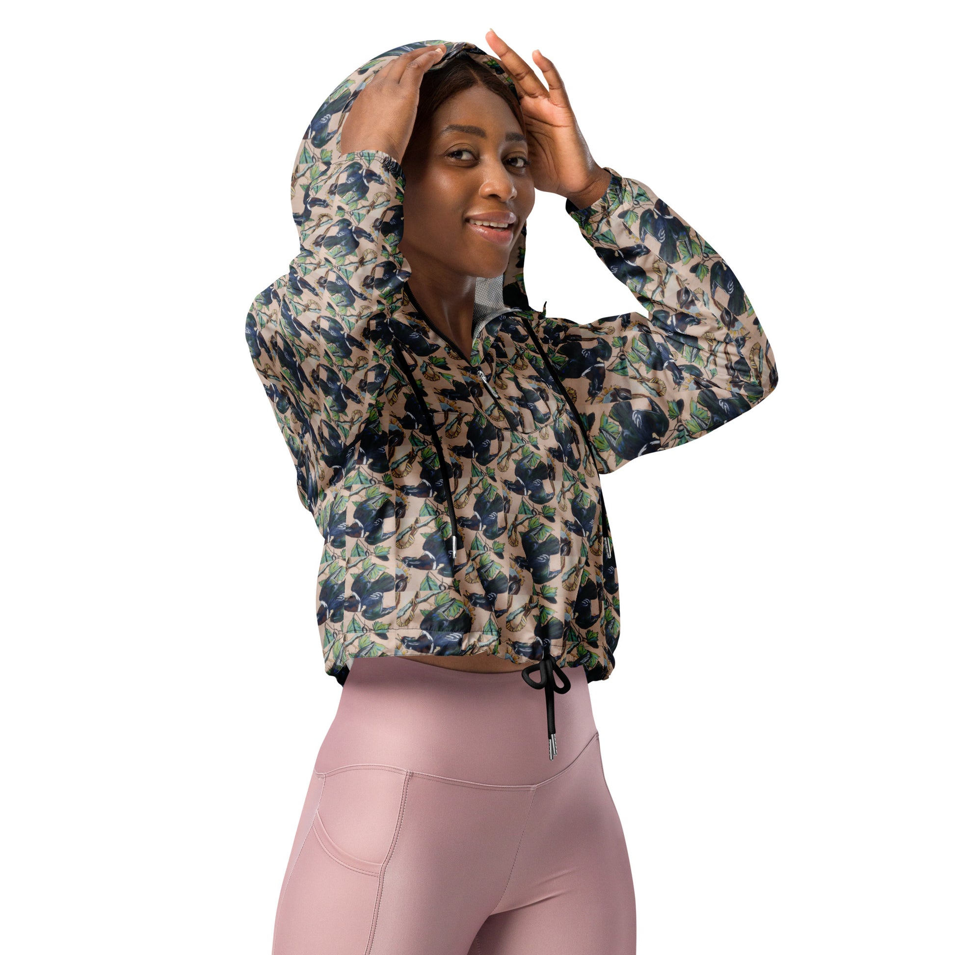 Hike in style without the rain getting in the way—this cropped windbreaker is lightweight, waterproof, and suitable for every kind of adventure. Features include side-slit pockets, breathable mesh lining, and adjustable drawcords on the hood and waist to support all your stylish outdoor looks.